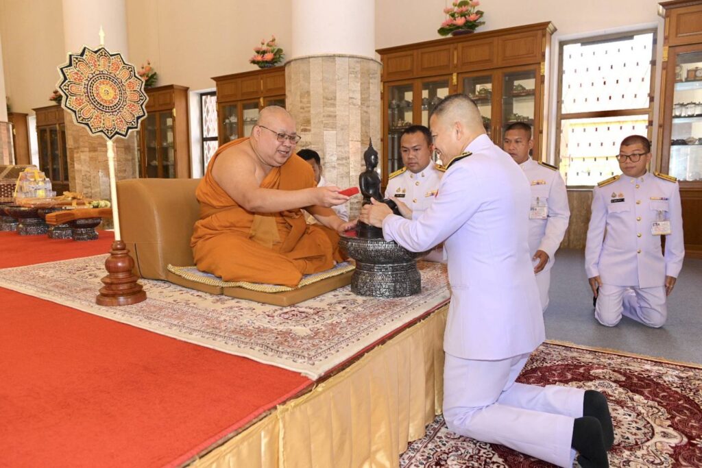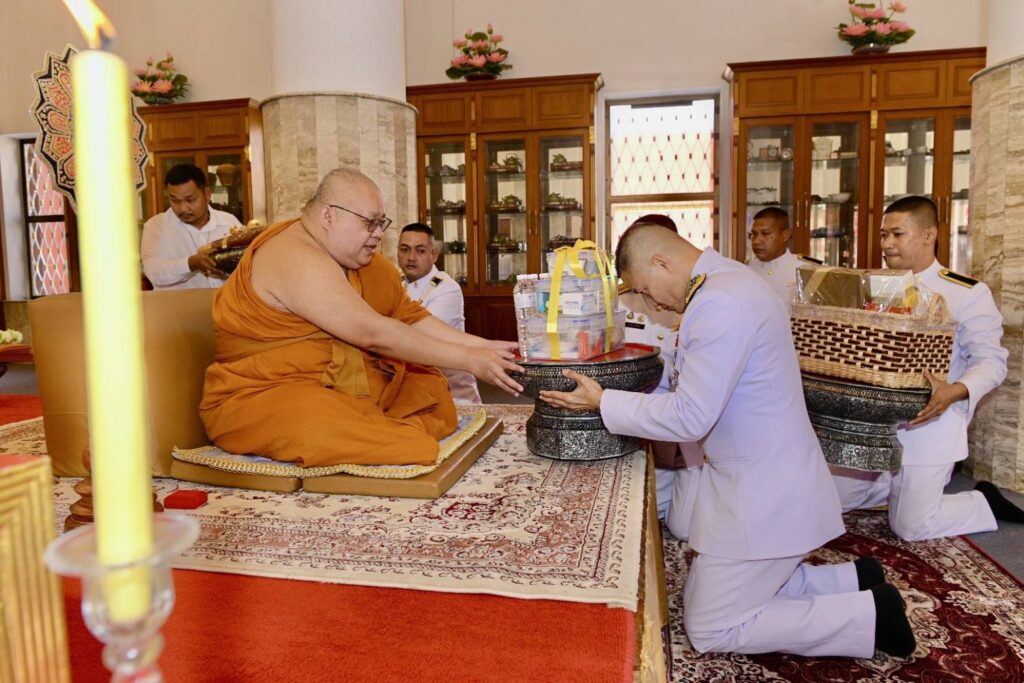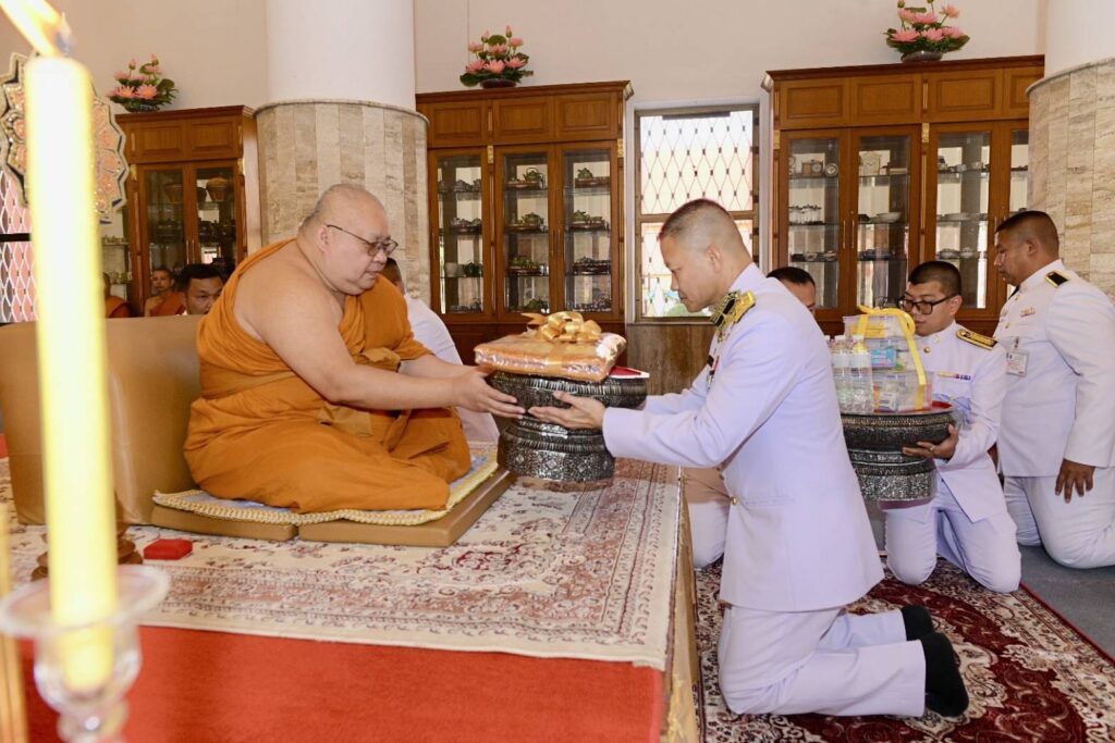 พระบาทสมเด็จพระเจ้าอยู่หัว ทรงพระกรุณาโปรดเกล้าโปรดกระหม่อม ให้ พล.ท.ปณต แสงเทียน ประจำสำนักพระราชวังพิเศษ ระดับ ๑๐ เชิญผ้าไตร พร้อมเครื่องสังฆทาน (ทรงจบ) และสิ่งของพระราชทาน ถวายแด่ พระครูสิริพรหมโสภิต เจ้าอาวาสวัดพิกุลทอง พระอารามหลวง เจ้าคณะอำเภอท่าช้าง ณ พระอุโบสถ วัดพิกุลทอง พระอารามหลวง ตำบลพิกุลทอง อำเภอท่าช้าง จังหวัดสิงห์บุรี วันศุกร์ที่ ๒๐ ธันวาคม ๒๕๖๗