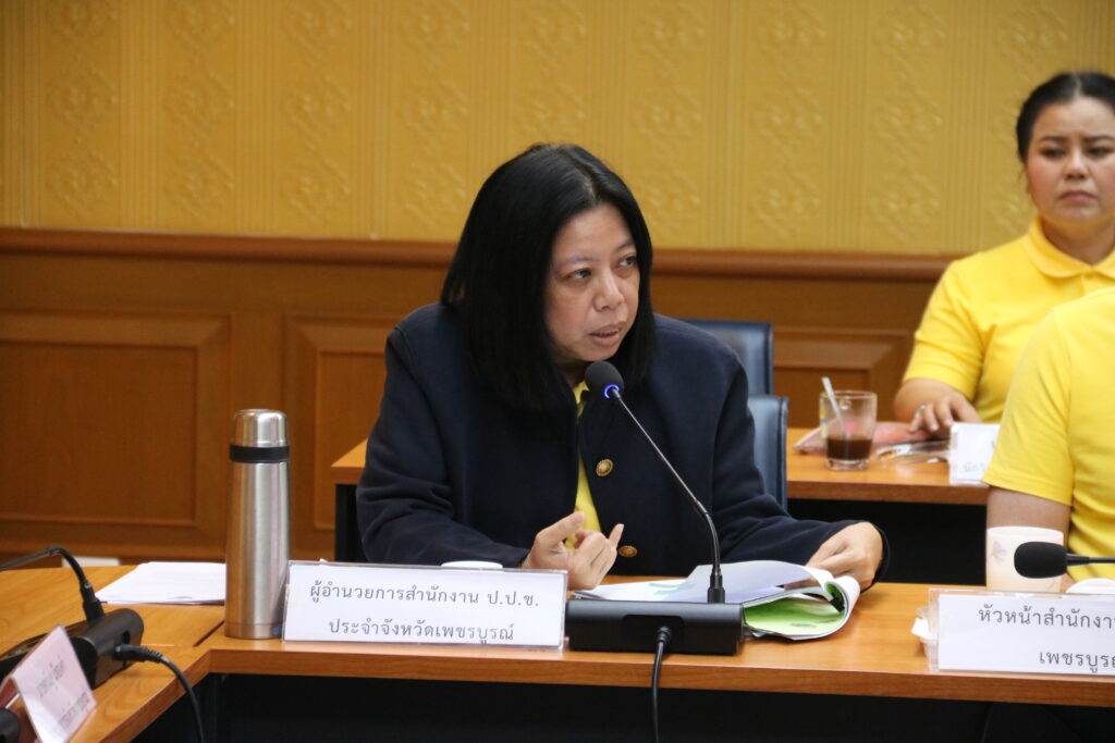 สำหรับการประชุมในวันนี้ที่ประชุมได้มีการแจ้งให้ทราบถึงผลการดำเนินงานป้องกันการทุจริตในจังหวัดเพชรบูรณ์ โดยสำนักงาน ป.ป.ช. ประจำจังหวัดเพชรบูรณ์ ได้รับแจ้งเบาะแส การทุจริตในพื้นที่ จำนวน 3 ประเด็น ประกอบด้วย 1. กรณีเจ้าหน้าที่ของรัฐส่อทุจริตในการจัดงานประเพณีอุ้มพระดำน้ำ ประจำปี พ.ศ. 2567 เรื่องการการปิดถนน และการเก็บค่าเช่าให้ผู้เช่าขายสินค้าบริเวณทางเท้า บริเวณหอโบราณคดี เพ็ชรบูรณ์อินทราชัย การจัดให้มีการเล่นการพนันปาโป่ง บิงโก โยนห่วง ได้มีการขออนุญาตตามพระราชบัญญัติการพนัน พุทธศักราช 2478 หรือไม่ ซึ่งหน่วยงานที่เกี่ยวข้องได้เข้าชี้แจงกับ สำนักงาน ป.ป.ช. ประจำจังหวัดเพชรบูรณ์แล้ว 2.ประเด็นถนนที่ใช้สำหรับออกกำลังกายซึ่งชำรุดเสียหายอันเกิดจากรถบรรทุกขนดิน ของผู้รับจ้างโครงการขุดลอกบริเวณด้านหลังองค์พระใหญ่ (พุทธอุทยานเพชรบุระ) ปัจจุบันองค์การบริหารส่วนตำบลสะเดียง กำลังเตรียมขอรับการสนับสนุนงบประมาณเงินอุดหนุนเฉพาะกิจจากกรมส่งเสริมการปกครองท้องถิ่นประจำปี 2569 และ 3. เรื่องร้องเรียนกรณีผู้อำนวยการโรงเรียนบ้านโนนสะอาด ตำบลดงมูลเหล็ก อำเภอเมืองเพชรบูรณ์ ได้ให้ครูประจำชั้นหักเงินอุดหนุน นักเรียนยากจนพิเศษ ปีการศึกษาที่ 1/2567 โดยอ้างว่าเป็นการบริจาค สำนักงาน ป.ป.ช. ประจำจังหวัดเพชรบูรณ์ ได้ส่งเรื่องให้สำนักงานเขตพื้นที่การศึกษาประถมศึกษาเพชรบูรณ์เขต 1 ปัจจุบันได้มีการแต่งตั้งคณะกรรมการสอบสวนแล้ว