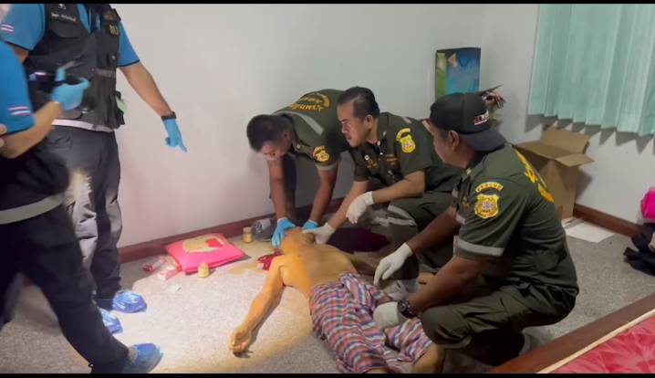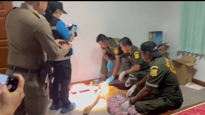 เมื่อเวลา 16.30 น.วันที่ 23 ธ.ค.67 พ.ต.ต.ปริญญา แสงวรราช สารวัตรเวร สภ.โคกตูม อ.เมืองลพบุรี พร้อมด้วยเจ้าหน้าที่ ตร.พิสูจน์หลักฐาน ภ.จว.ลพบุรี และอาสาสมัครมูลนิธิร่วมกตัญญูู ตรวจาอบที่เกิดเหตุ ภายในบ้านเลขที่ 74 ม.5 ต.โคกตูม อ.เมืองลพบุรี ซึ่งบ้านตึก2ชั้นขนาดใหญ่ บริเวณบ้านเป็นสวน และเลี้ยงไก่ชนอยู่จำนวนมาก เจ้าหน้า ตร.พร้อมด้วยอาสาสมัคร เข้าตรวจสอบภายในห้ิองนอน ชั้นล่าง พบศพชาย นุ่งผ้าขาวม้าผืนเดียว นอนหงาย สภาพศพ มีเลือดไหลออกมาจากศรีษะ นองพื้น โดยหันเท้าไปทางเตียงนอน และบนเตียงพบอาวุธปืน แมกกาซีนขนาด . 32 วางอยู่หนึ่งกระบอก และปลอกกระสุนปืนขนาดเดียวกัน ตกอยู่ในที่เกิดเหตุ 1 ปลอกเจ้าที่จึงเก็บไว้เป็นหลักฐานทราบชื่อผู้เสียชีวิตชื่อนาย จรัญ เกิดชนะอายุ 77 ปี ซึ่งเป็นเจ้าของบ้านที่เกิดเหตุมีบาดแผลถูกยึงเข้าที่ขมับขวาทะลุซ้ายเสียชีวิต