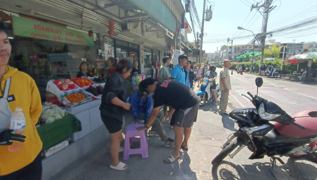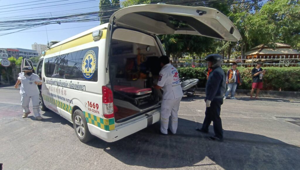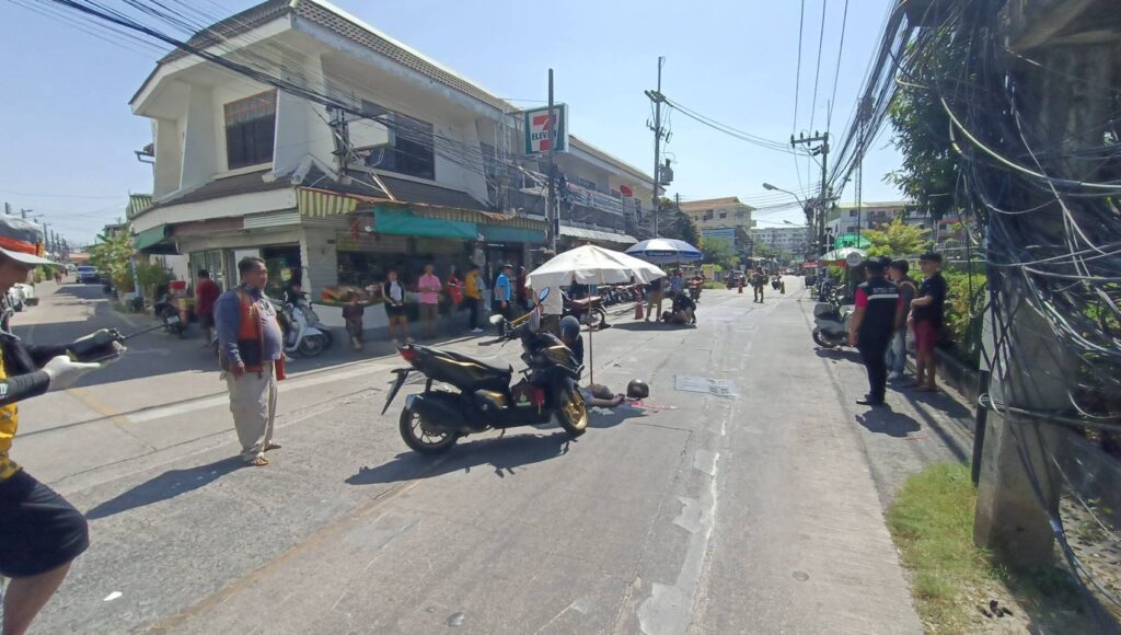 ชาวต่างชาติหักหลบ จยย.คันหน้าเสียหลักข้ามเลนชนประสานงา คนไทยเจ็บ 3 ตนเองสาหัส ก่อนเสียชีวิตยัง รพ. เวลา 12.00 น. วันที่ 24 ธ.ค. 67 หน่วยกู้ภัยสว่างบริบูรณ์เมืองพัทยารับแจ้งเหตุ จยย.ชนกับ จยย.บริเวณหน้า ร.ร.พัทธยาอรุโณทัย พัทยากลาง ต.หนองปรือ อ.บางละมุง จ.ชลบุรี มีผู้บาดเจ็บ 3 ราย มีอาการสาหัส 1 หลังรับแจ้งจึงประสานทีมกู้ชีพสว่างบริบูรณ์รุดตรวจสอบและช่วยเหลือ ในที่เกิดเหตุพบชาวบ้านกำลังมุงดูเหตุการณ์จำนวนมาก ที่กลางถนนพบผู้บาดเจ็บเป็นชายต่างชาติ อายุประมาณ 65-70 ปี นอนจมกองเลือด โดยมีเจ้าหน้าที่ช่วยกันทำการปั๊มหัวใจอยู่ ตรวจสอบยังพบบาดแผลฉีกขาดตามร่างกายจำนวนหลายแห่ง อาการสาหัส ใกล้เคียงกันพบผู้บาดเจ็บอีก 2 ราย ไหล่ซ้ายปวดขยับไม่ได้และแขนขวาบาดเจ็บ นำตัวผู้บาดเจ็บทั้ง 3 รายส่งต่อ รพ.เมืองพัทยา จากการสอบถามนายพรวิศว์ ขวัญเมือง อายุ 25 ปี ผู้บาดเจ็บให้การเล่าว่าตนเองขับรถมากับแฟนสาวจากพัทยากลางเข้าซอย ส่วนชาวต่างชาติขับมาด้วยความเร็วมุ่งหน้าแยกบิ๊กซีพัทยากลาง เมื่อถึงที่เกิดเหตุชาวต่างชาติได้หักหลบรถ จยย.คนขับผู้หญิง จนเสียหลักข้ามมาทางฝั่งตน จนเกิดการชนประสานงากันขึ้นอย่างแรง จนมีผู้บาดเจ็บดังกล่าว เบื้องต้นรับแจ้งจากทีมแพทย์ว่าชาวต่างชาติไม่สามารถทนพิษบาดแผลได้เสียชีวิตในเวลาต่อมา ด้านเจ้าหน้าที่ตำรวจจะได้ดูกล้องวงจรปิดเพื่อหาสาเหตุของการเกิดอุบัติเหตุในครั้งนี้