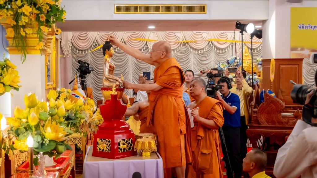 โดยเจ้าประคุณสมเด็จพระมหาธีราจารย์ กรรมการมหาเถรสมาคม เจ้าคณะใหญ่หนเหนือ เจ้าอาวาสวัดพระเชตุพนวิมลมังคลาราม เป็นประธานฝ่ายบรรพชิต ในพิธี “เจริญพระพุทธมนต์นานาชาติ, แสดงพระธรรมเทศนา 2 ภาษา บรรจุพระบรมสารีริกธาตุในพระเกศ “พระพุทธสำเภาทอง” คุณสุจันทร์ญา พาภัคพานิชย์กุล ประธานมูลนิธิวัดยานนาวา เป็นประธานฝ่ายคฤหัสถ์ พร้อมกันนี้ พระเดชพระคุณพระพรหมเสนาบดี เจ้าคณะภาค7 ที่ปรึกษามหาเถรสมาคม เจ้าอาวาสวัดปทุมคงคา ในฐานะรองประธานที่ปรึกษาโครงการ พระเดชพระคุณพระธรรมวชิรโมลี เจ้าอาวาสวัดยานนาวาในฐานะ ประธานโครงการฯองค์แสดงพระธรรมเทศนา2ภาษา พระวิสุทธิวราภรณ์ ผู้ช่วยเจ้าอาวาสวัดเทพธิดาราม รองประธานโครงการฯ พระศรีวชิราภรณ์ รองเจ้าคณะภาค 8 ผู้ช่วยเจ้าอาวาสวัดยานนาวา ผู้อำนวยการสถานีวิทยุโทรทัศน์เฉลิมพระเกียรติฯWBTV พระเถระ คณะสงฆ์ พุทธศาสนิกชน 100 ท่าน ร่วมรับโล่ “สำเภาธรรม”ในฐานะผู้ส่งเสริมอุปถัมภ์พระพุทธศาสนา โดยเมตตาเจ้าประคุณสมเด็จพระมหาธีราจารย์ กรรมการมหาเถรสมาคม เจ้าคณะใหญ่หนเหนือ เจ้าอาวาสวัดพระเชตุพนวิมลมังคลารามเป็นประธานมอบอาทิ พระราชวัชรสาครคณี พระราชภาวนาวชิราจารย์ คุณมนัสนันท์ เทียนผาสุข ดร.ศรีนวล คำดี คุณนิตยา ลักษณวิศิษฐ์ และคุณปณฐ เสนีวงศ์ ณ อยุธยา รองผู้อำนวยการสถานีวิทยุโทรทัศน์เฉลิมพระเกียรติฯWBTVเป็นต้นร่วมพิธี