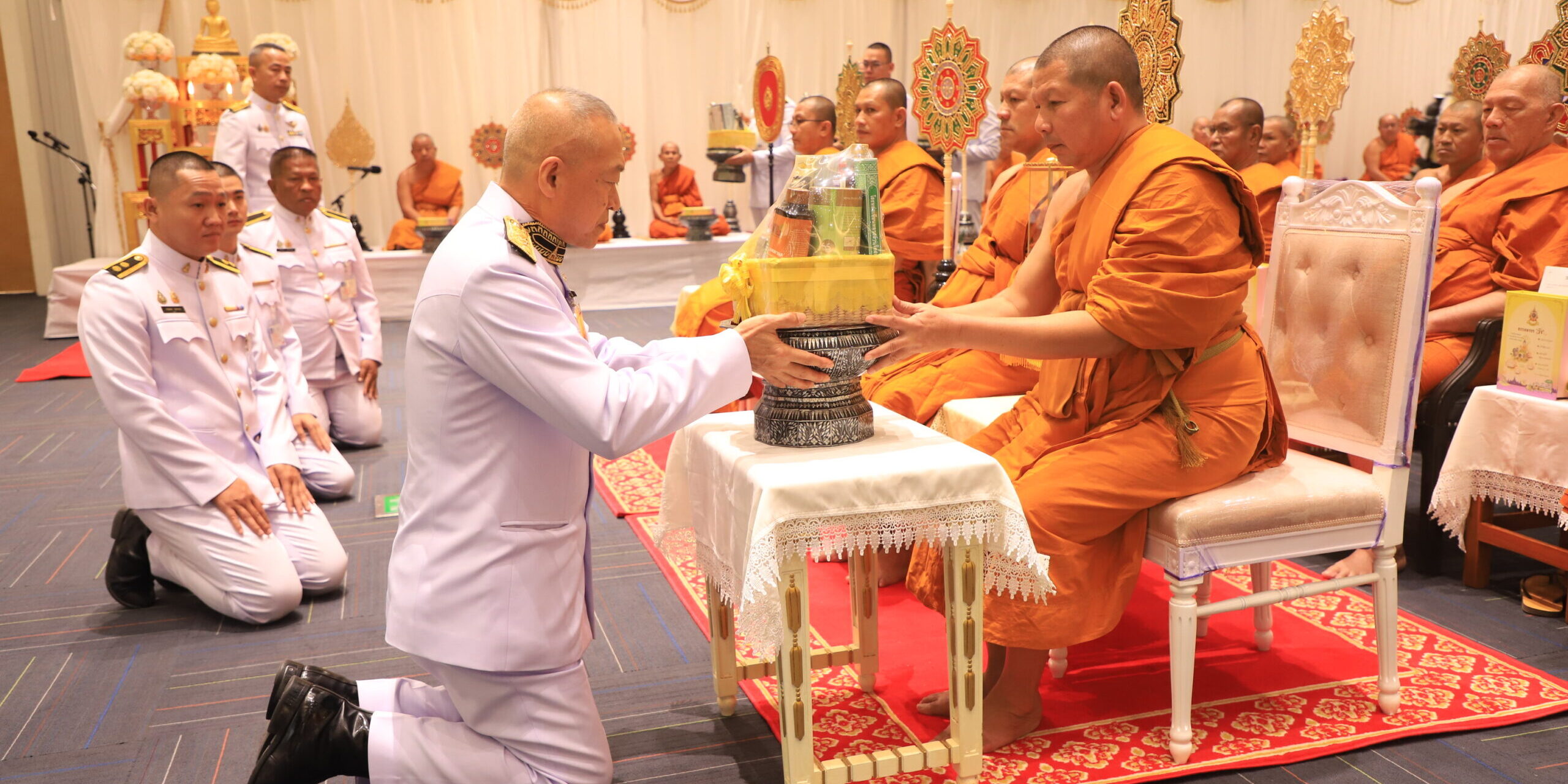 วันที่ 24 ธันวาคม 2567 เวลา 13.00 น. พระบาทสมเด็จพระเจ้าอยู่หัว ทรงพระกรุณาโปรดเกล้าฯ ให้ พลอากาศเอก อิทธิศักดิ์ ศรีสังข์ ประจำสำนักพระราชวังพิเศษระดับ 10 เชิญชุดหนังสือธรรมนาวา “วัง” จำนวน 300 ชุด และน้ำปานะ อาหารพระราชทานถวายแด่พระสงฆ์และประชาชนในพื้นที่อำเภอเมืองลพบุรี ณ ห้องประชุมพระนารายณ์ ชั้น 4 มหาวิทยาลัยราชภัฏเทพสตรี จังหวัดลพบุรี โดยมีพระภาวนาวชิรมงคล วิ.รองเจ้าคณะจังหวัดลพบุรี วัดป่าธรรมโสภณ เป็นประธานฝ่ายสงฆ์ พระสังฆาธิการ จำนวน 179 รูป พร้อมด้วย คณะสงฆ์จังหวัดลพบุรี นายอำพล อังคภากรณ์กุล ผู้ว่าราชการจังหวัดลพบุรี นางสุวจี ศิริปัญโญ นายกเหล่ากาชาดจังหวัดลพบุรี ส่วนราชการ ศาล ทหาร ตำรวจ ผู้นำท้องที่ ผู้นำท้องถิ่น จิตอาสา เข้าร่วมพิธีรวมจำนวนกว่า 2,000 รูป/คน ในการนี้ พระราชเมธีวชิรดิลก ผู้ช่วยเจ้าอาวาสวัดชูจิตธรรมารามพระอารามหลวง รักษาการเจ้าอาวาสวัดป่า ศรีอุทุมพร จังหวัดสระบุรี ได้ร่วมพิธีในครั้งนี้ด้วย นอกจากนี้ พระครูสิริจริยาภรณ์ เจ้าคณะอำเภอเมืองลพบุรี เจ้าอาวาสวัดเสาธงทอง พระอารามหลวง ได้บรรยายพิเศษในการเผยแพร่พระรัตนตรัยโดยใช้หลักธรรมพระราชทาน ธรรมนาวา “วัง” แก่คณะสงฆ์ และพุทธศาสนิกชนภายในงานอีกด้วย