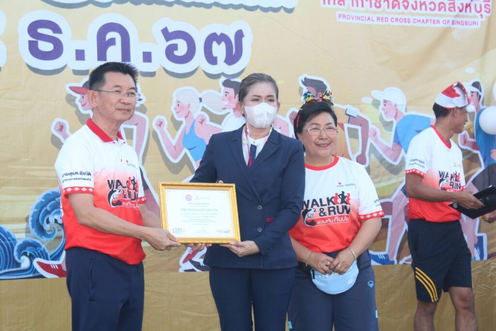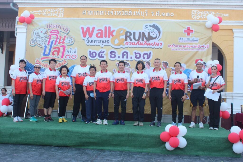 สิงห์บุรี-วันที่ 25 ธันวาคม 2567 เวลา 17.00 น.นายชัยวุฒิ ธนาคมานุสรณ์ อดีตรัฐมนตรีว่าการกระทรวงดิจิทัลเพื่อเศรษฐกิจและสังคม เป็นประธานเปิดการจัดกิจกรรมเดิน-วิ่งการกุศลเหล่ากาชาดจังหวัดสิงห์บุรี จังหวัดสิงห์บุรีเพื่อหารายได้ไว้ช่วยเหลือผู้ประสบสาธารณภัย ผู้ยากไร้ ผู้พิการ ผู้สูงอายุ ผู้ตกทุกข์ได้ยาก โดยมีผู้สมัครเข้าร่วมโครงการ จำนวน 1,200 คน ระยะทาง 3.20 กม. ซึ่งนางวาสนา ธีรนิติ นายกเหล่ากาชาดจังหวัดสิงห์บุรี เป็นผู้กล่าวรายงานวัตถุประสงค์ของโครงการ โดยมีนายสุเมธ ธีรนิติ ผู้ว่าราชการจังหวัดสิงห์บุรี นายวราดิศร อ่อนนุช รองผู้ว่าราชการจังหวัดสิงห์บุรี นางสาววีรวรรณ จันทนเสวี รองผู้ว่าราชการจังหวัดสิงห์บุรี/รองนายกเหล่ากาชาดจังหวัดสิงห์บุรี นายธัมณูญ แจ่มใส ปลัดจังหวัดสิงห์บุรี/เลขานุการเหล่ากาชาดจังหวัดสิงห์บุรี หัวหน้าส่วนราชการ นายอำเภอ ผู้ช่วยนายกเหล่ากาชาดจังหวัด ที่ปรึกษา และกรรมการเหล่ากาชาดจังหวัดสิงห์บุรี สื่อมวลชน และประชาชน ร่วมกิจกรรมดังกล่าวด้วย ทั้งนี้ ผู้ว่าราชการจังหวัดสิงห์บุรีและนายกเหล่ากาชาดจังหวัดสิงห์บุรี ได้มอบใบประกาศเกียรติคุณให้แก่ผู้สนับสนุนเงินในการจัดกิจกรรมดังกล่าว และมอบของรางวัลพัดลมให้แก่ผู้ที่เข้าเส้นชัยชาย-หญิง จำนวน 20 รางวัล ณ ศาลากลางจังหวัดสิงห์บุรี หลังเดิม (รศ 130) อำเภอเมือง จังหวัดสิงห์บุรี