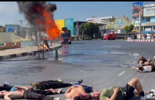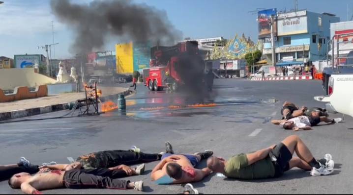 บูรณาการจำลองเหตุการณ์ซ้อมแผนรับอุบัติเหตุรับมือช่วงเทศกาลปีใหม่ โดยมีรถบรรทุก ประสานงากับรถกระบะบนถนนนารายณ์มหาราช ซึ่งอยู่ในเขตเทศบาลเมืองลพบุรี