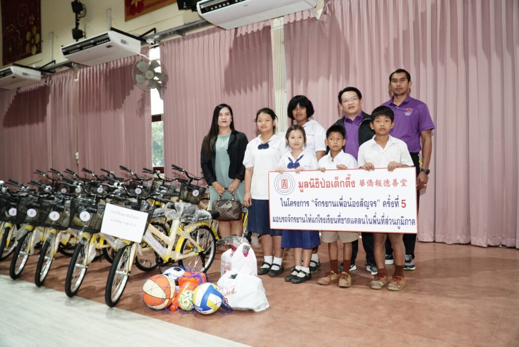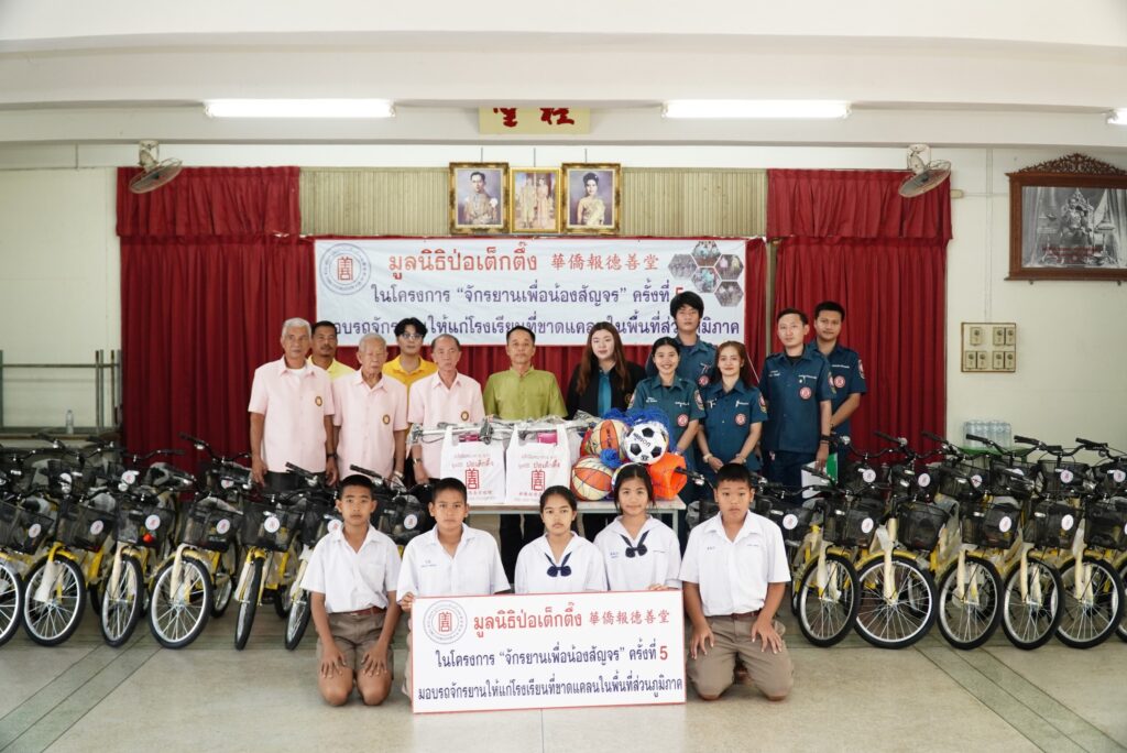 ระหว่างวันที่ 19 พฤศจิกายน – 27 ธันวาคม 2567 มูลนิธิป่อเต็กตึ๊ง โดย นายวิเชียร เตชะไพบูลย์ ประธานกรรมการมูลนิธิฯ ห่วงใยเยาวชนในถิ่นทุรกันดาร มอบหมายให้ ฝ่ายสังคมสงเคราะห์ นำโดย นางสาวศุภรัตน์ สมบัติเจริญไทย หัวหน้าแผนกส่งเสริมการศึกษาและอาชีพ จัดทีมลงพื้นที่โรงเรียนชนบท มอบจักรยาน และอุปกรณ์กีฬา ให้แก่นักเรียนประสบปัญหาในการเดินทางมาโรงเรียนในพื้นที่จังหวัดทางภาคเหนือ และอีสาน ประกอบด้วย จังหวัดนครราชสีมา บุรีรัมย์ สุรินทร์ ศรีสะเกษ อุบลราชธานี กำแพงเพชร ตาก พิษณุโลก นครสวรรค์ อุทัยธานี ลำปาง พะเยา เชียงใหม่ แม่ฮ่องสอน ชัยภูมิ เลย หนองบัวลำภู อุดรธานี และขอนแก่น รวม 19 จังหวัด 95 โรงเรียน เพื่ออำนวยความสะดวกแก่นักเรียนที่ประสบปัญหาในการเดินทางมาโรงเรียน รวมถึงเป็นการแบ่งเบาภาระค่าพาหนะแก่ผู้ปกครองได้อีกทางหนึ่ง อีกทั้งยังเสริมสร้างให้นักเรียนได้ออกกำลังกายเรียนรู้กฎจราจร รวมถึงการแบ่งปัน การดูแลรักษาสาธารณสมบัติร่วมกัน โดยมีผู้แทนจากหน่วยงานรัฐแต่ละแห่งเป็นประธานในพิธี พร้อมด้วย เยาวชน และผู้แทนจากสถาบันการศึกษาในแต่ละแห่ง เป็นผู้รับมอบ