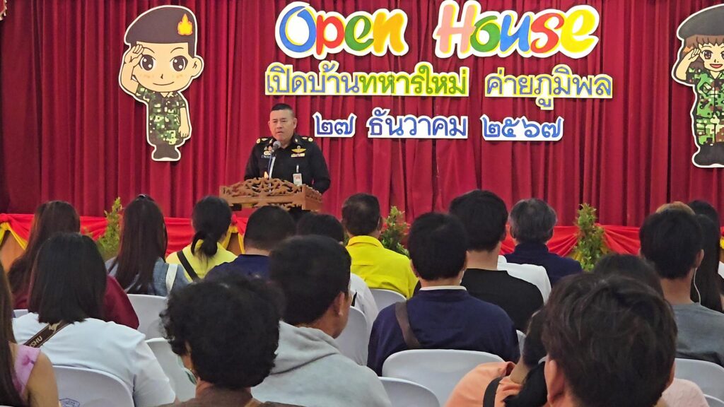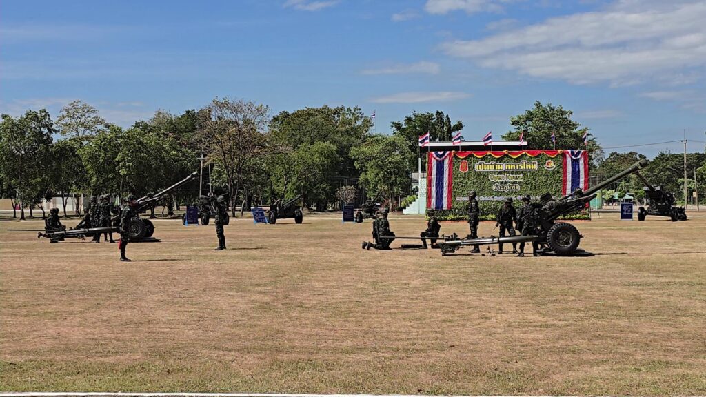 พลตรี พิศิษฐ ปัญญานะ ผู้บัญชาการศูนย์การทหารปืนใหญ่ เป็นประธาน กล่าวให้การต้อนรับญาติทหารใหม่ ผลัดที่ 2 ประจำปี 2567 ทั้ง 6 หน่วยฝึก ภายในหน่วยขึ้นตรง ศูนย์การทหารปืนใหญ่ ค่ายภูมิพลฯ จ.ลพบุรี ตามโครง open house “ เปิดบ้านทหารใหม่ ค่ายภูมิพลฯ ” พร้อมนำญาติทหารใหม่ ซึ่งเดินทางมาจากภูมิลำเนาต่างๆ กว่า 500 คน เข้ารับชมการแสดงขีดความสามารถของน้อง ๆ ทหารหารใหม่ หลังผ่านการฝึกมาอย่างหนัก มาตลอด 6 สัปดาห์ ซึ่งประกอบด้วย การยิงปืนฉับผลัน , การไหว้ครูมวยไทย , การแสดงศิลปะแม่ไม้มวยไทยและการต่อสู่ในระยะประชิด , การเคลื่อนย้ายที่ตั้งยิงของอาวุธปืนใหญ่สนาม ซึ่งได้รับความสนใจจากญาติทหารใหม่เป็นอย่างมาก ที่ได้เห็นความเปลี่ยนแปลงของบุตรหลานตนเอง เมื่อเข้ามารับราชการทหาร
