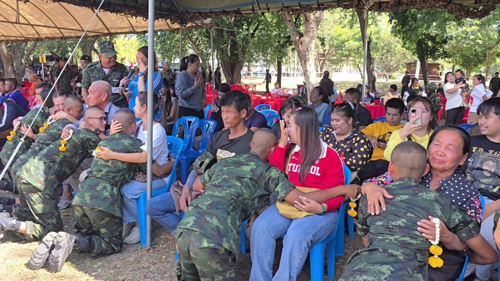 ทั้งนี้ ผู้บัญชาการศูนย์การทหารปืนใหญ่ ยังได้นำญาติ ของ น้อง ๆ ทหารใหม่ ทั้ง 5 หน่วยฝึก พร้อมด้วย พวงมาลัยดอกไม้ เข้าแสดงมุทิตาจิต ต่อ ผู้ปกครองและญาติทหารใหม่ ซึ่งบางคนถึงกับหลังน้ำตาด้วยความยินดี ที่ได้เจอกันครั้งแรกหลังเข้ามารับราชการทหาร โดยผู้บัญชาการศูนย์การทหารปืนใหญ่ ได้เดินพบปะทักทายกับญาติทหารใหม่ พร้อมให้คำมั่นว่า…กองทัพบกพร้อมดูแลบุตรหลายทุกคนเป็นอย่างดี เพราะทหารใหม่เป็นเสมือนน้องคนเล็กของกองทัพบก และ เราคือครอบครัวเดียวกัน