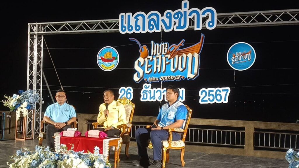 วันที่ 26 ธ.ค.67 เวลา 18.00 น.ที่ริมเขื่อนศาลเจ้าพ่อหลักเมืองสมุทรสาคร ต.มหาชัย อ.เมือง จ.สมุทรสาคร นายวรณัฎฐ์ หนูรอต รองผู้ว่าราชการจังหวัดสมุทรสาคร พร้อมด้วย นายมงคล มงคลตรีลักษณ์ นายกสมาคมการประมงสมุทรสาคร นายนิรันดร์ แสงสุชเอี่ยม ผู้แทนชมรมร้านอาหาร ได้ร่วมแถลงข่าวโครงการยกระดับมาตรฐานการผลิต การแปรรูปอาหารและภาคอุตสาหกรรมต่อเนื่อง กิจกรรม HUB of Seafood โดยมี หัวหน้าส่วนราชการ ผู้บริหารองค์กรปกครองส่วนท้องถิ่น องค์กรภาคเอกชน และผู้เกี่ยวข้อง เข้าร่วม
