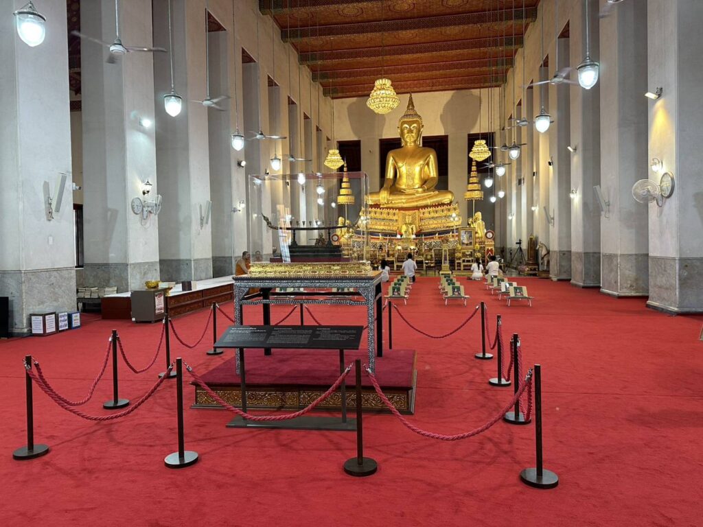 ต่อมาพระแสงราวเทียนนี้ได้สูญหายไป ไม่มีใครพบเห็นอีกเลย แต่เมื่อปี พ.ศ. 2567 คราวนั้นจัดฉลองวัดครบ 338 ปี ตระกูลที่ได้ครอบครองพระแสงราวเทียนต่อกันมายาวนานหลายชั่วอายุคนจึงได้นำกลับมาถวายพระพรหมวชิราธิบดี อธิบดีสงฆ์ เพื่อถวายคืนเป็นสมบัติของวัดต่อไป และได้ผ่านการพิสูจน์แล้ว่า เป็นของจริง ของแท้ดั้งเดิม หลวงพ่ออธิบดีสงฆ์จึงเมตตาให้นำออกมาแสดงที่กลางพระอุโบสถให้ทุกท่านได้เข้าชม นอกจากนั้น วัดยังได้เปิดให้เข้ากราบไหว้ ขอพร พระราชานุสาวรีย์สมเด็จพระบวรราชเจ้ามหาสุรสิงหนาท กรมพระราชวังบวรสถานมงคล ต้นพระศรีมหาโพธิ์ อายุเก่าแก่ 207 ปี พระวิหารหลวง สถานที่แสดงมรดกล้ำค่าทางพระพุทธศาสนา พระอุโบสถ ขนาดกว้างใหญ่ที่สุด พระมณฑป ที่ประดิษฐานพระบรมสารีริกธาตุองค์สมเด็จพระสัมมาสัมพุทธเจ้า ศาลาการเปรียญ สถานที่สังคายนาพระไตรปิฎกในรัชกาลที่ 1 ตำหนักสมเด็จพระสังฆราช ที่ประทับของสมเด็จพระสังฆราช ตึกเรียนเก่าแก่ของมหาวิทยาลัยมหาจุฬาลงกรณราชวิทยาลัย หมู่กุฎิสงฆ์อันงดงามตามแบบอย่างพระอารามหลวงในสมัยโบราณ เป็นต้น