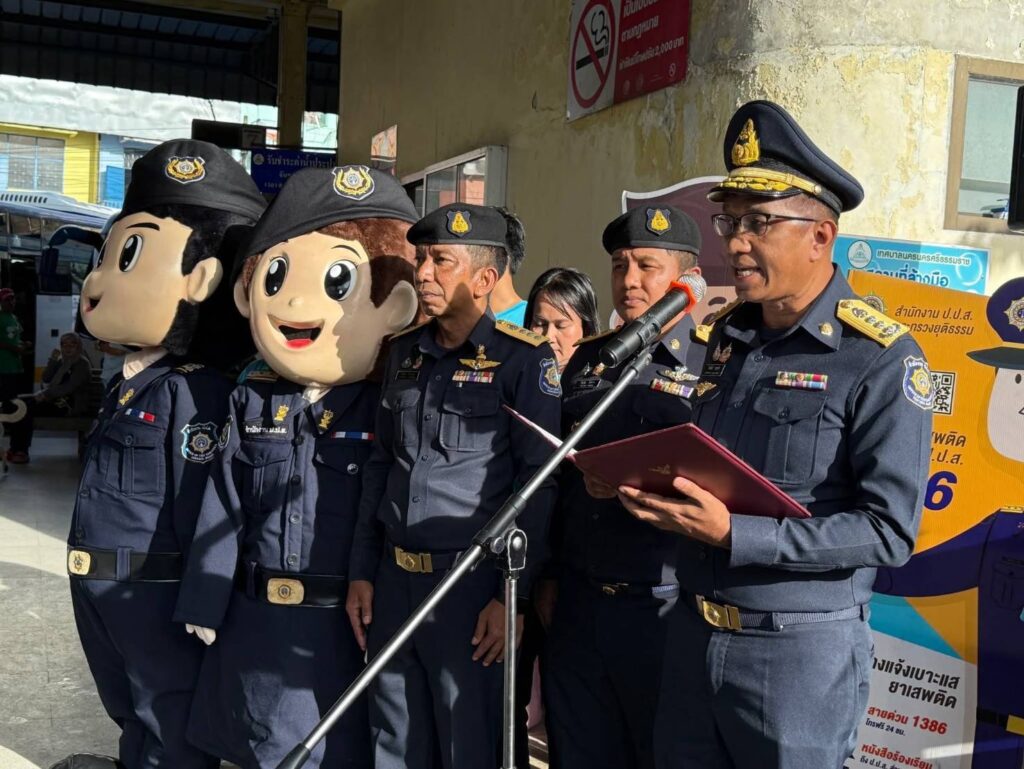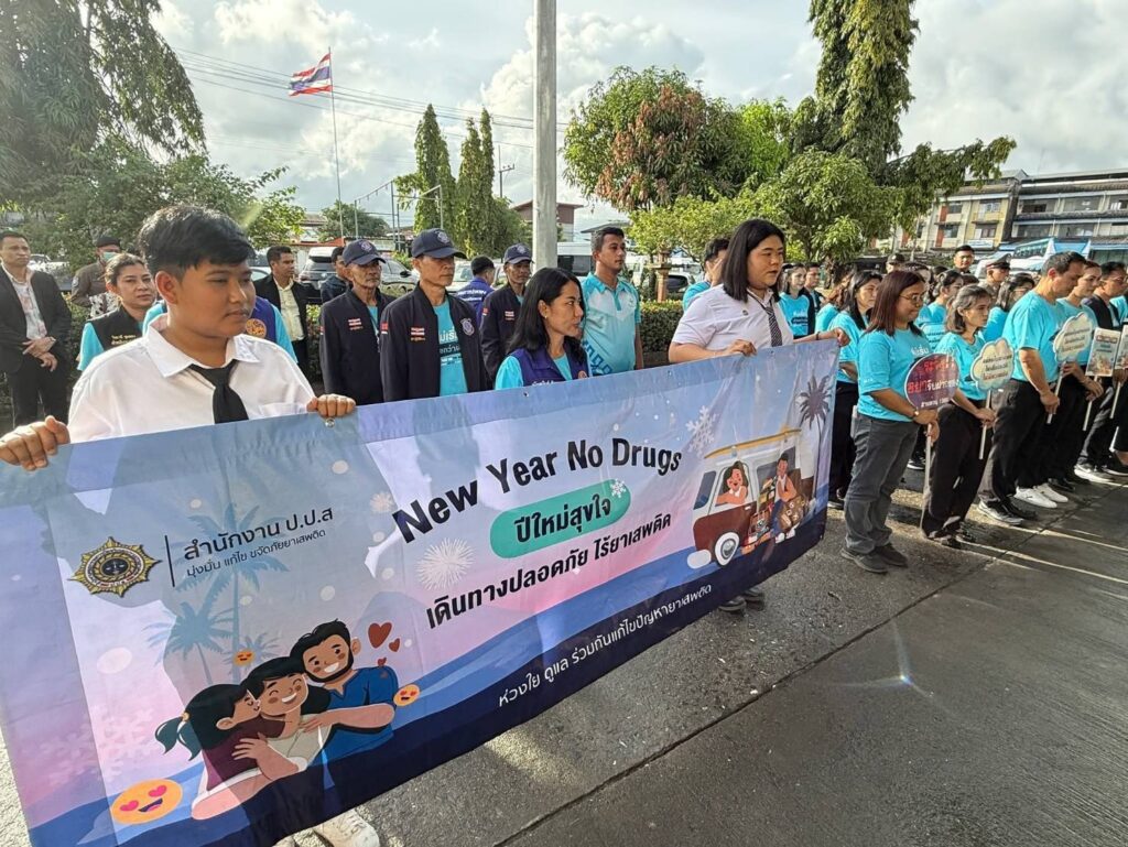 จัดกิจกรรมขึ้น ณ สถานีขนส่งผู้โดยสารจังหวัดนครศรีธรรมราช อำเภอเมือง จังหวัดนครศรีธรรมราช เพื่อเป็นการรณรงค์ประชาสัมพันธ์ สร้างการรับรู้การป้องกันและแก้ไขปัญหายาเสพติดในช่วงเทศกาลปีใหม่ ประจำปี พ.ศ. 2568 โดยจัดกิจกรรมขึ้นทั้งในส่วนกลางและส่วนภูมิภาค เพื่อมอบเป็นของขวัญปีใหม่ให้กับประชาชน โดยมีเจตนารมณ์เพื่อรณรงค์ประชาสัมพันธ์สร้างการรับรู้ในการป้องกัน ปราบปราม และแก้ไขปัญหายาเสพติด ป้องปรามการใช้ยาเสพติดในช่วงเทศกาลปีใหม่ ที่อาจก่อให้เกิดผลกระทบต่อความปลอดภัยในชีวิตและทรัพย์สินของประชาชน ภายใต้แนวคิด “ห่วงใย ดูแล ร่วมกันแก้ไขปัญหายาเสพติด” รณรงค์ให้พี่น้องประชาชนเฝ้าระวังสัมภาระ ไม่รับฝากสิ่งของจากคนแปลกหน้าในระหว่างเดินทาง เพราะอาจเป็นการรับฝากยาเสพติด และแจ้งเตือนประชาชนอย่ารับจ้างเปิดบัญชีธนาคาร เพราะอาจถูกหลอกใช้เพื่อกระทำความผิดเกี่ยวกับยาเสพติดได้ อีกทั้ง ร่วมเฝ้าระวังหากพบบุคคลที่มีพฤติการณ์เกี่ยวข้องกับยาเสพติด สามารถแจ้งสายด่วน ป.ป.ส. โทร. 1386