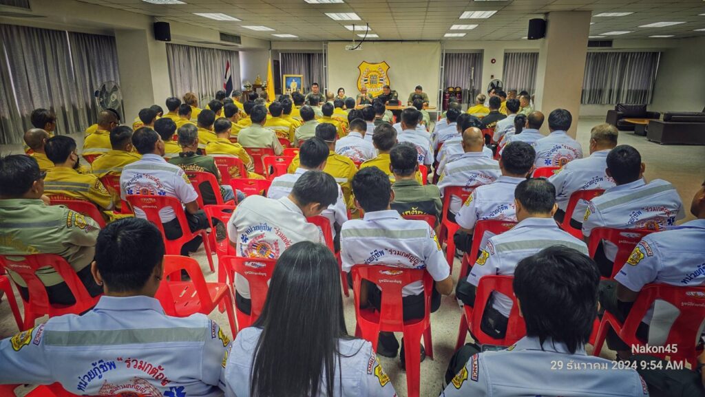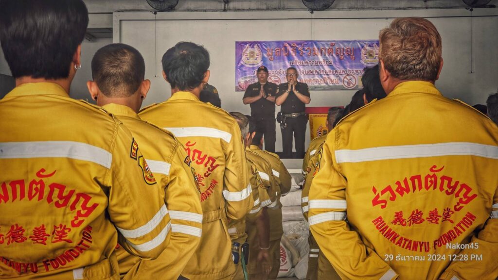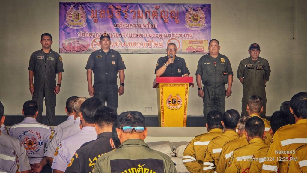 ที่อาคารใหญ่ มูลนิธิร่วมกตัญญูบางพลี วันอาทิตย์ที่ 29 ธันวาคม 2567 ดร.รัตนา สมสกุลรุ่งเรือง ประธาน ได้มอบหมาย ให้ นาย สมศักดิ์ ปาลวัฒน์ ผู้จัดการ มูลนิธิร่วมกตัญญู ประชุมและมอบโอวาสให้กับ จนท.กู้ชีพ,กู้ภัย,ศูนย์วิทยุ พระนคร และ ปล่อยแถวขบวน รถพยาบาล,รถกู้ชีพกู้ภัย,รถดับเพลิง เพื่อเตรียมความพร้อม ร่วมอำนวยความสะดวก ดูแลความปลอดภัย ให้กับประชาชน ในช่วงเทศกาลส่งท้ายปีเก่า ต้อนรับปีใหม่ 2568