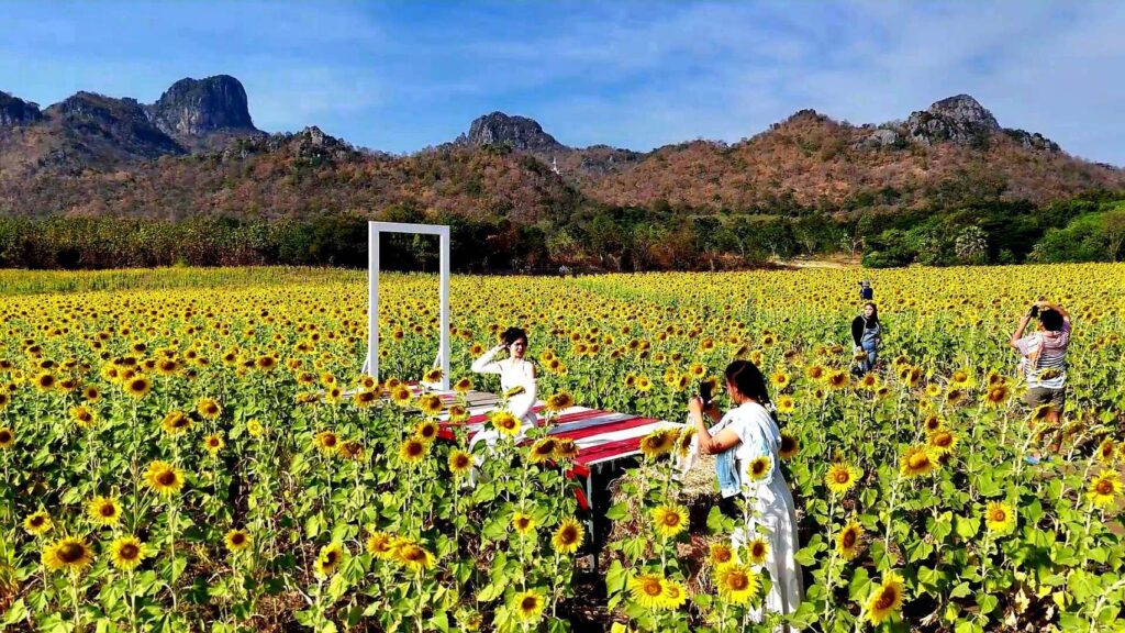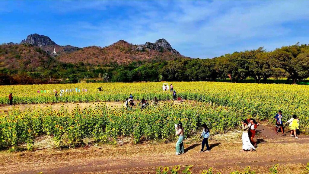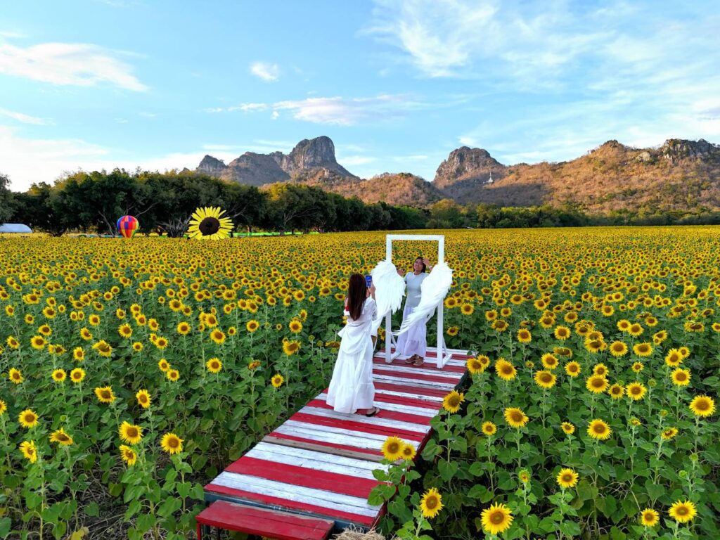 โดยทางศูนย์สงครามพิเศษ ซึ่งเป็นเจ้าของพื้นที่ ได้ใช้พื้นที่ดังกล่าว… ซึ่งว่างเว้นจากการฝึก มาปลูกทานตะวันเพื่อการท่องเที่ยวในช่วงฤดูหนาว ณ พื้นที่แห่งนี้เป็นประจำทุกปี พร้อมจัดเจ้าหน้าที่ทหารมาคอยอำนวยความสะดวกในด้านการจราจร และดูแลความปลอดภัยให้กับนักท่องเที่ยวที่เดินทางมาเที่ยวชมทุ่งทานตะวันแห่งนี้ ทำให้นักท่องเที่ยวต่างพูดเป็นเสียงเดียวกันว่าสวยงามมากๆ และมั่นใจการดูแลความปลอดภัยให้แก่นักท่องเที่ยว ได้อย่างเหมาะสม โดยทุ่งทานตะวันบานแห่งนี้จะออกดอกบานสะพรั่ง ต้อนรับนักท่องเที่ยวต่อเนื่อง ไปจนถึงวันที่ 8 มกราคม 2568 ปีใหม่นี้ ใครยังไม่ได้แพลนไปท่องเที่ยวที่ไหน หรือเดินทางผ่านจังหวัดลพบุรี ศูนย์สงครามพิเศษ ก็เชิญท่องเที่ยวทุ่งทานตะวันแปลงใหญ่ในเขตทหาร ที่ สนามการโดดร่มบ้านท่าเดื่อ ที่ชาวบ้านเรียกกันว่า… เขาจีนแล ซึ่งเปิดให้นักท่องเที่ยวได้เข้าเที่ยวชมกันอย่างจุใจ ตลอดทั้งวัน ถือเป็นการ “มอบของขวัญปีใหม่ให้แก่ ประชาชน จากใจทหาร ”