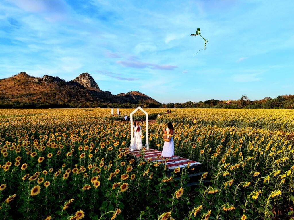 ที่ สนามกระโดดร่มบ้านท่าเดื่อ ตำบลนิคมสร้างตนเอง อำเภอเมือง จังหวัดลพบุรี ขณะนี้ ศูนย์สงครามพิเศษ ได้เปิดเป็นแหล่งท่องเที่ยวในพื้นที่ทหาร เพื่อเติมความสุขให้แก่ประชาชน ด้วยการเที่ยวชมทุ่งทานตะวันแปลงใหญ่ บริเวณเทือกเขาจีนแล ซึ่งกำลังออกดอกบานสะพรั่ง ต้อนรับปีพุทธศักราชใหม่ 2568 แบบบานข้ามปี บรรยากาศเป็นไปอย่างคึกคัก โดยในแต่ละวันจะมีประชาชนและนักท่องเที่ยวจำนวนมากต่างพาครอบครัวเดินทางมาพักผ่อน และท่องเที่ยวถ่ายภาพแห่งความประทับใจ เพื่อชมความงามของทุ่งทานตะวันบาน ณ สนามโดดร่มแห่งนี้ ที่กำลังออกดอกสีเหลืองบานสะพรั่งอย่างสวยงามบนเนื้อที่กว่า 140 ไร่ ที่ลายล้อมไปด้วยภูเขาที่โดดเด่นเป็นฉากหลังอย่างสวยงาม อากาศกำลังดี และถือได้ว่าเป็นทุ่งทานตะวันแปลงใหญ่ในพื้นที่ “เขตทหาร” ที่สวยที่สุดแห่งเดียวของประเทศไทย