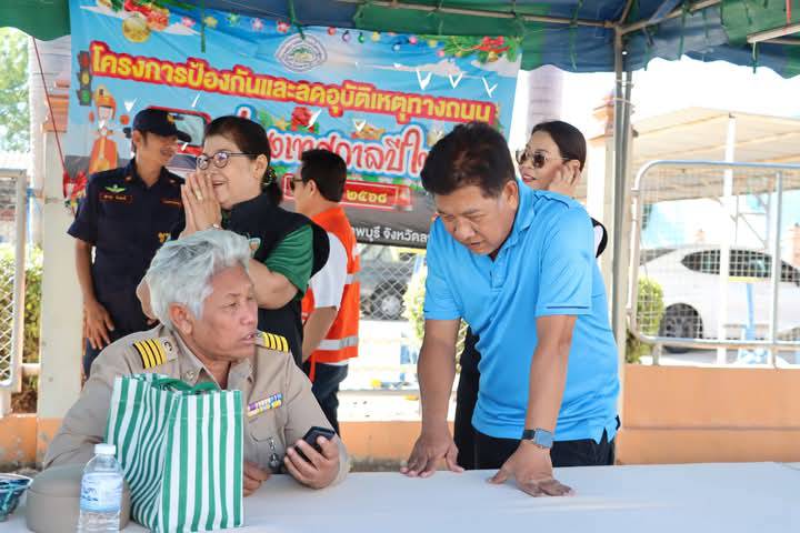 รองผู้ว่าราชการจังหวัดลพบุรี ควงแขนนายอำเภอเมืองลพบุรี ลงพื้นที่ตรวจเยี่ยมจุดตรวจและบริการกาป้องกันลดอุบัติเหตุทางถนนช่วงเทศกาลปีใหม่ 2568 ในพื้นที่เทศบาลตำบลโคกตูม อำเภอเมือง จังหวัดลพบุรี