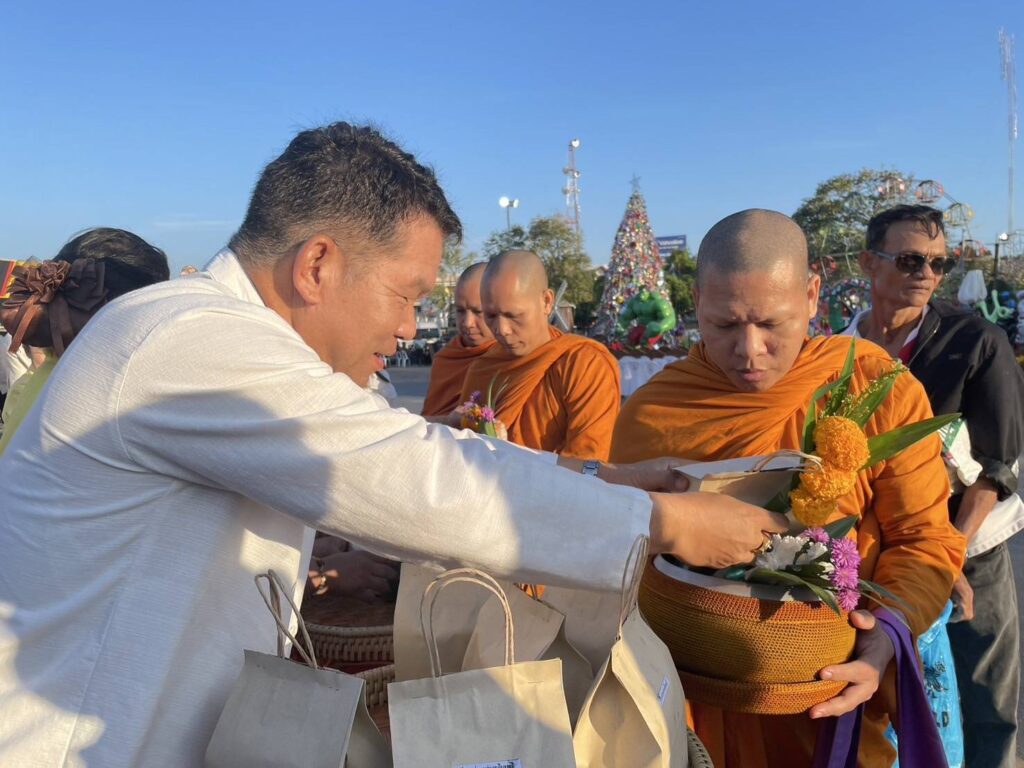 ทำบุญตักบาตรข้าวสารอาหารแห้ง ในวันส่งท้ายปีเก่า ต้อนรับปีใหม่ ได้มีพ่อค้าประชาชนเข้าร่วมพิธีอย่างคับคั่ง จัดโดยเทศบาลเมืองลพบุรี