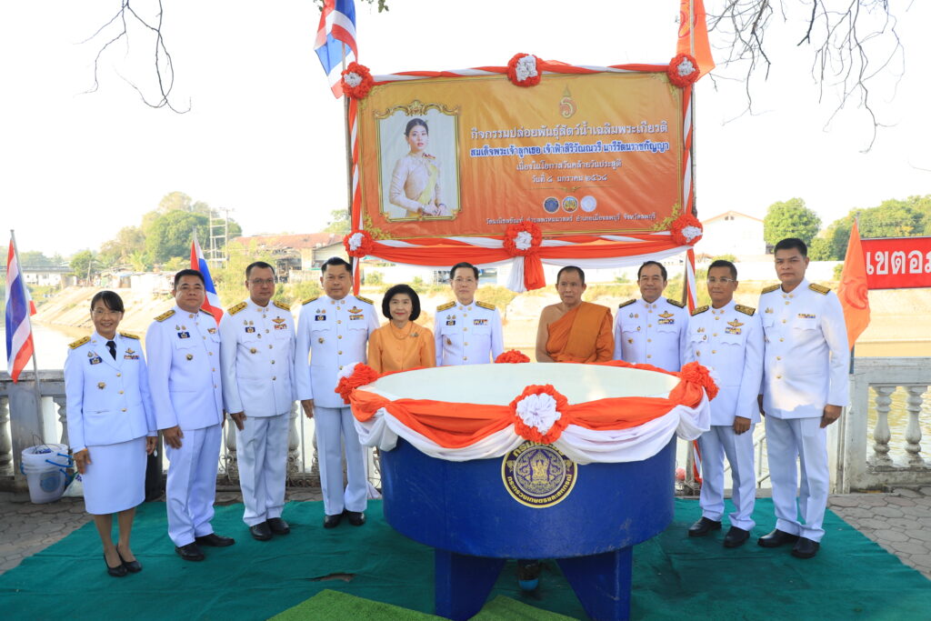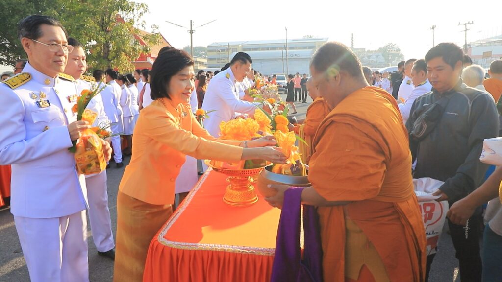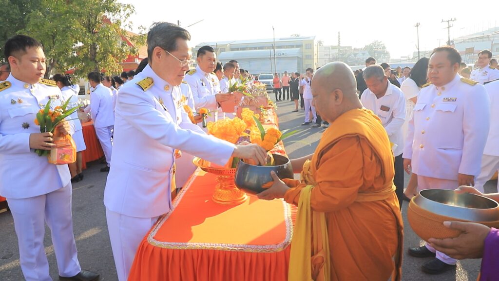 เป็นประธานฝ่ายสงฆ์ จากนั้นได้นำข้าราชการ ทหาร ตำรวจ และประชาชน ตักบาตรข้าวสารอาหารแห้งแด่พระสงฆ์ จำนวน 39 รูป และปล่อยพันธุ์ปลา จำนวน 39,999 ตัว ที่บริเวณท่าน้ำวัดมณีชลขันท์ เพื่อเฉลิมพระเกียรติและถวายเป็นพระกุศล