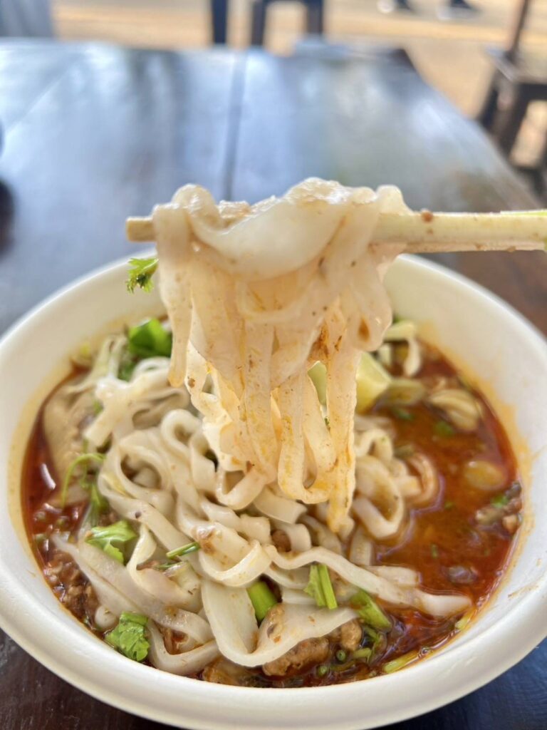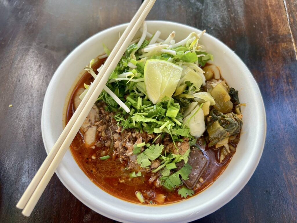 - ก๋วยเตี๋ยวน้ำเงี้ยว ข้าวซอยไก่ ถือเป็นอีกเมนูซิกเนเจอร์ของเชียงราย คือน้ำเงี้ยวหมูที่รสชาติโดดเด่นเป็นเอกลักษณ์ พริกแกงคั่วต้นตำรับจากชาวเชียงราย คั่วกับหมูสับจนหอม ทำให้น้ำซุปกลมกล่อม มีรสชาติเปรี้ยวนิดๆ จากมะเขือเทศ และที่ขาดไมได้คือดอกงิ้ว ถ้าไม่มีดอกงิ้วจะไม่ใช่น้ำเงี้ยวเจียงฮาย ทานคู่กับกะหล่ำปลีสดซอยสไลส์บางๆ และถั่วงอก พร้อมด้วยผักกาดดอง ส่วนเมนูข้าวซอยไก่ก็อร่อยไม่แพ้กัน ความนัวความกลมกล่อมของน้ำพริก หอมกรุ่นกะทิ น่องไก่ตุ๋นเปื่อยๆ น้ำซุปแทรกซึมเข้าถึงเนื้อ ทานคู่กับหอมแดง ผักกาดดอง โรยพริกป่นคั่วน้ำมันนิดหน่อย จะเพิ่มรสชาติให้อร่อยยิ่งขึ้น