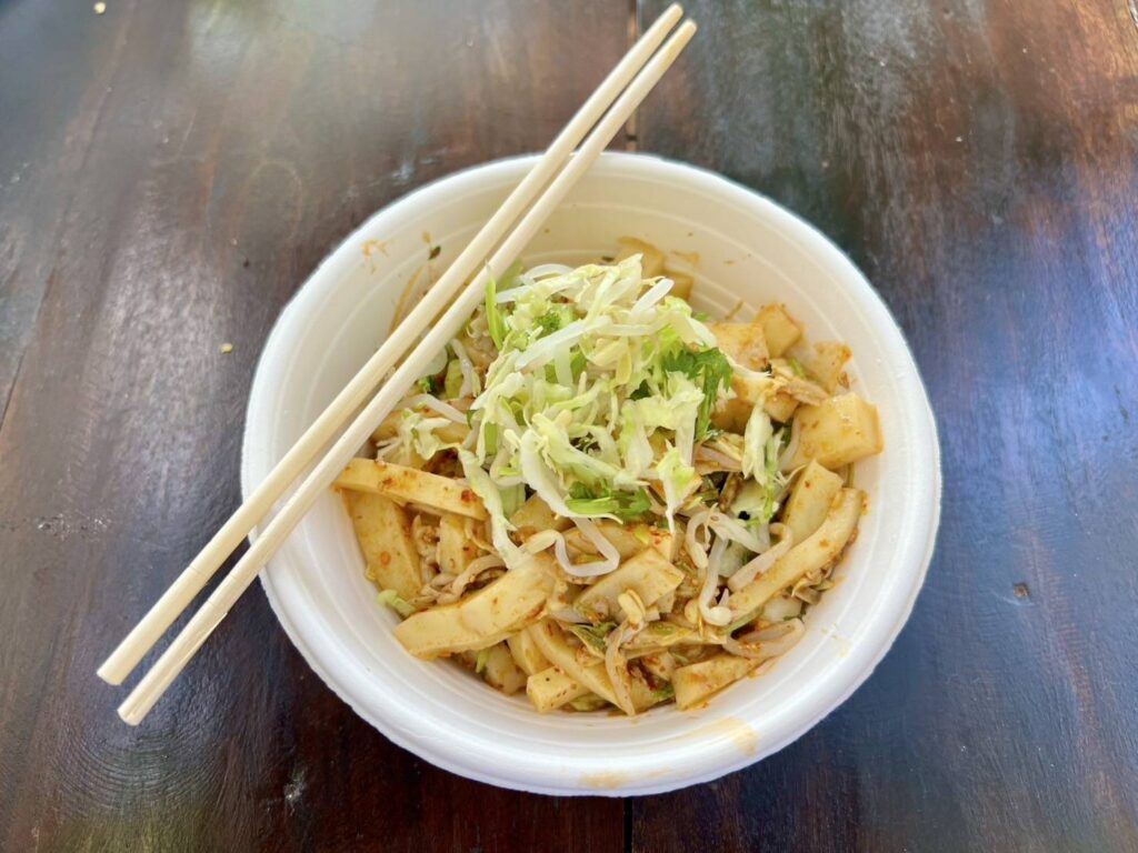 - บุกแห้งหม่าล่าชาชู เซต เส้นบุกคลุกซอสหม่าล่ารสชาติเข้มข้น ทานคู่กับหมูดำชาชู เสิร์ฟพร้อมกับซุป