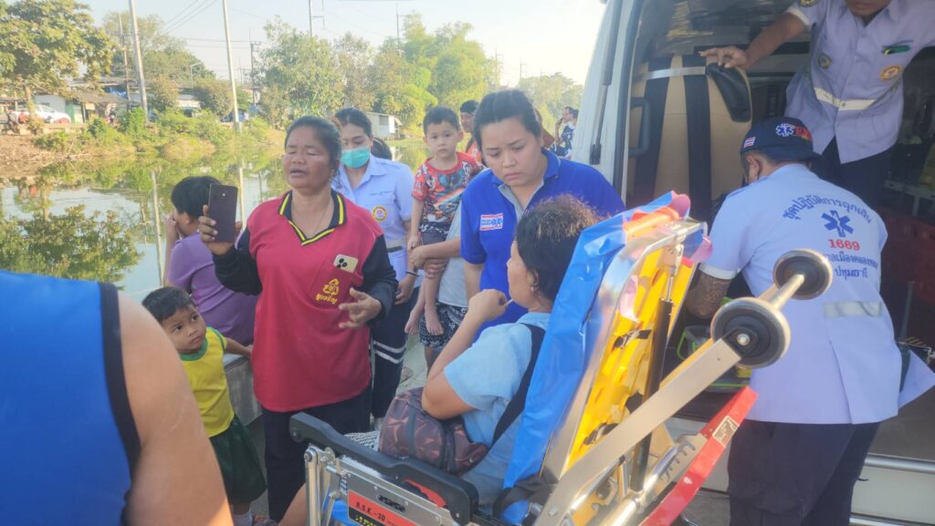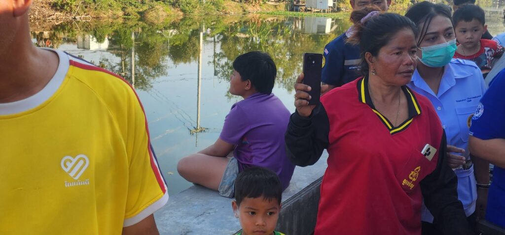 ในที่เกิดเหตุใกล้เคียงปากซอย บงกช 14 ต.คลองสอง อ.คลองหลวง จ.ปทุมธานีพบประชาชนยืนมุงดูภายในคลอง ซึ่งลูกชายของผู้สูญหายภายในน้ำนั่งร้องไห้อยู่บนคันกั้นน้ำ โดยมีเจ้าหน้าที่กูภัยเทศบาลเมืองคลองหลวง กำลัง ปฐมพยาบาลผู้หญิงอยู่ 1 คนที่เป็นลม คาดว่าเป็นแฟนสาว ของผู้สูญหายภายในน้ำ