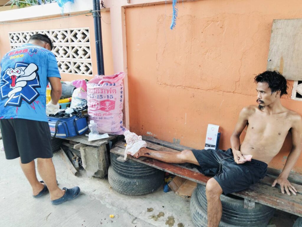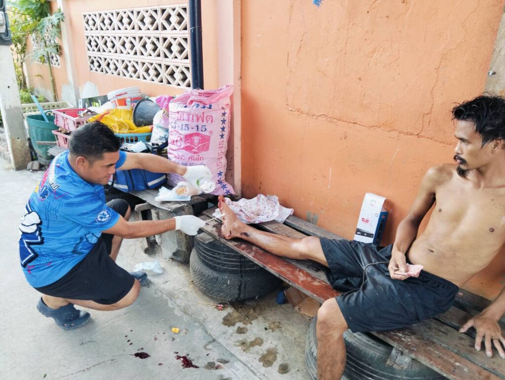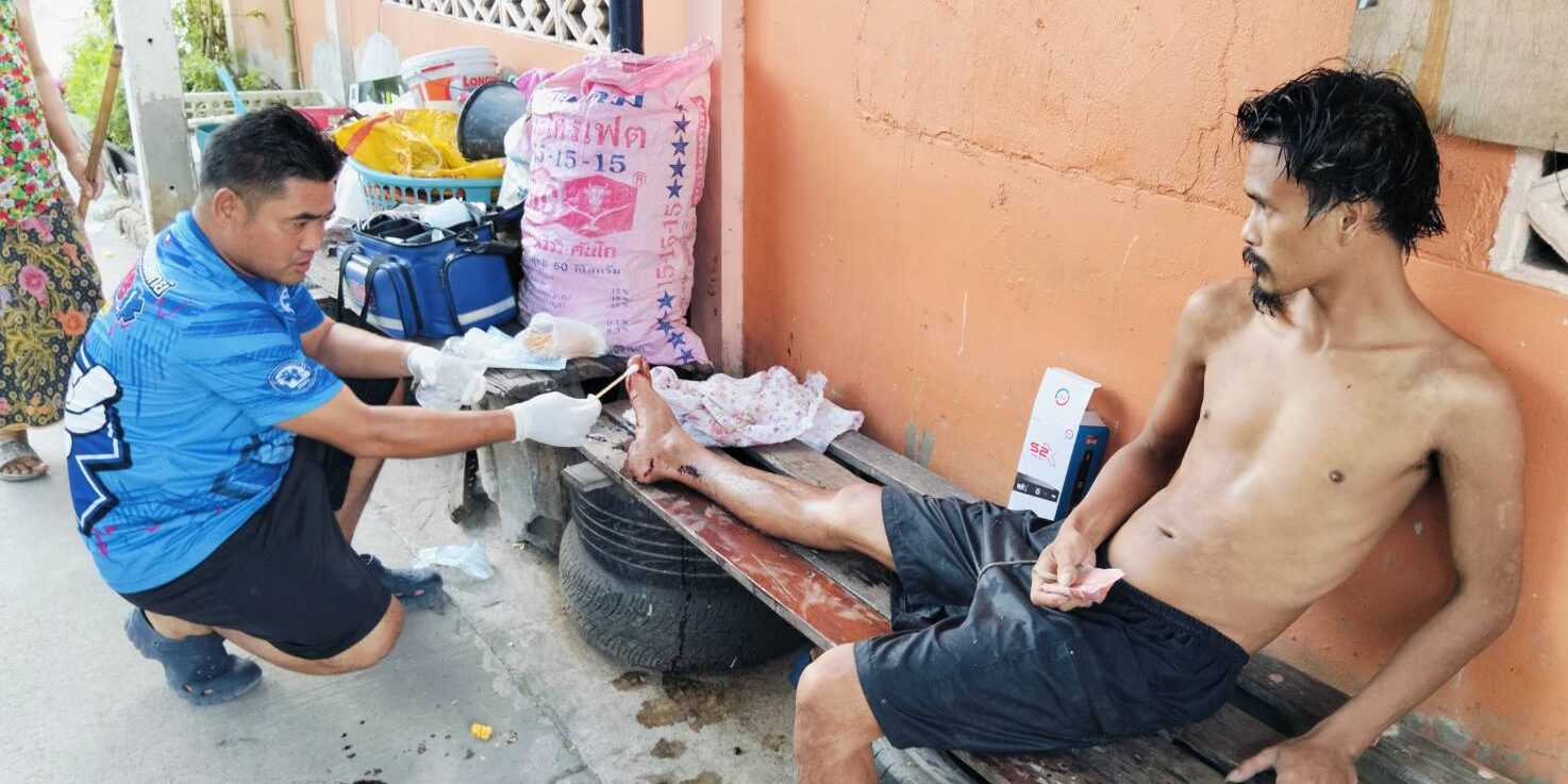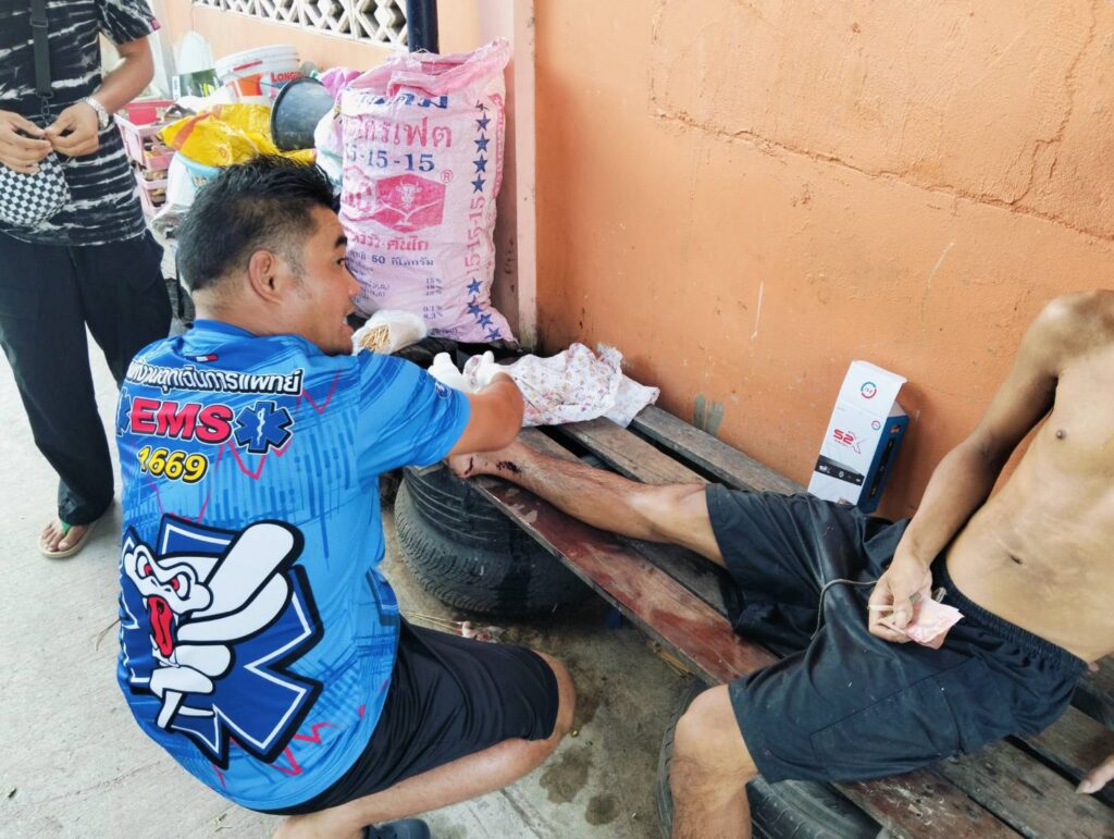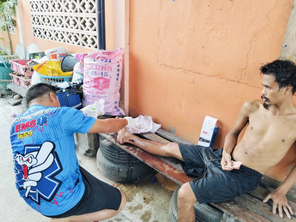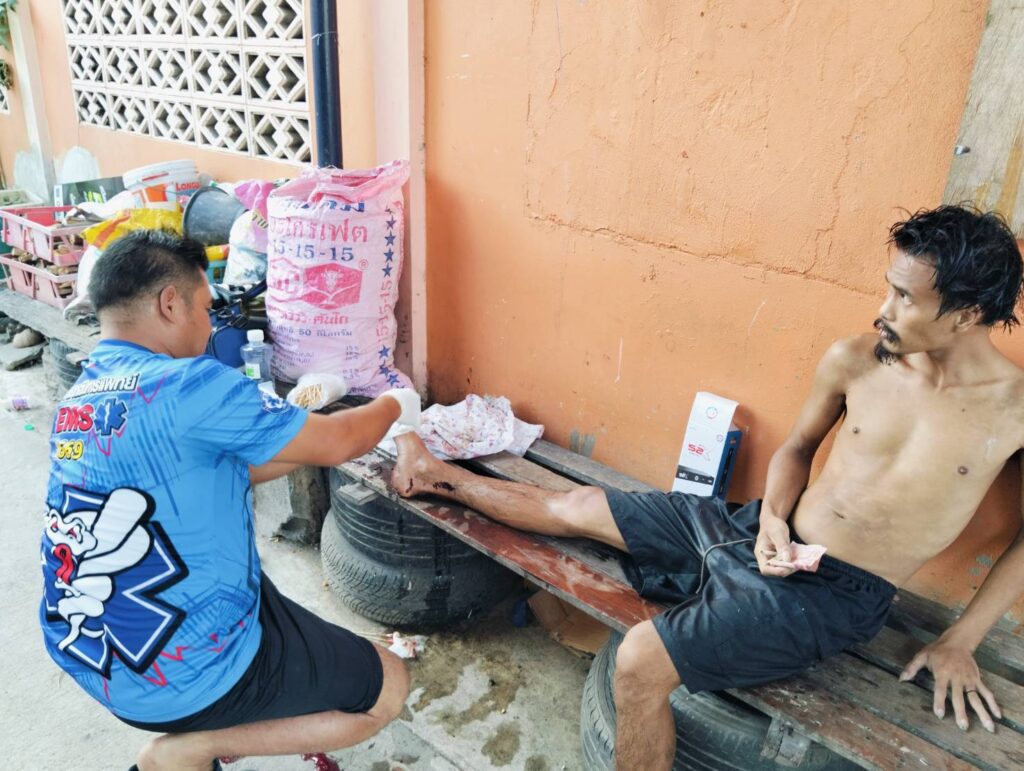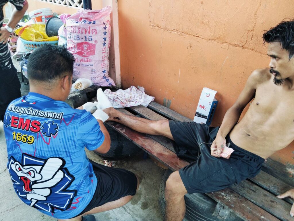 เดินเหยียบเศษแก้ว จึงประสานงานรถกู้ชีพเร่งช่วยเหลือส่งโรงพยาบาลรักษาอย่างเร่งด่วน