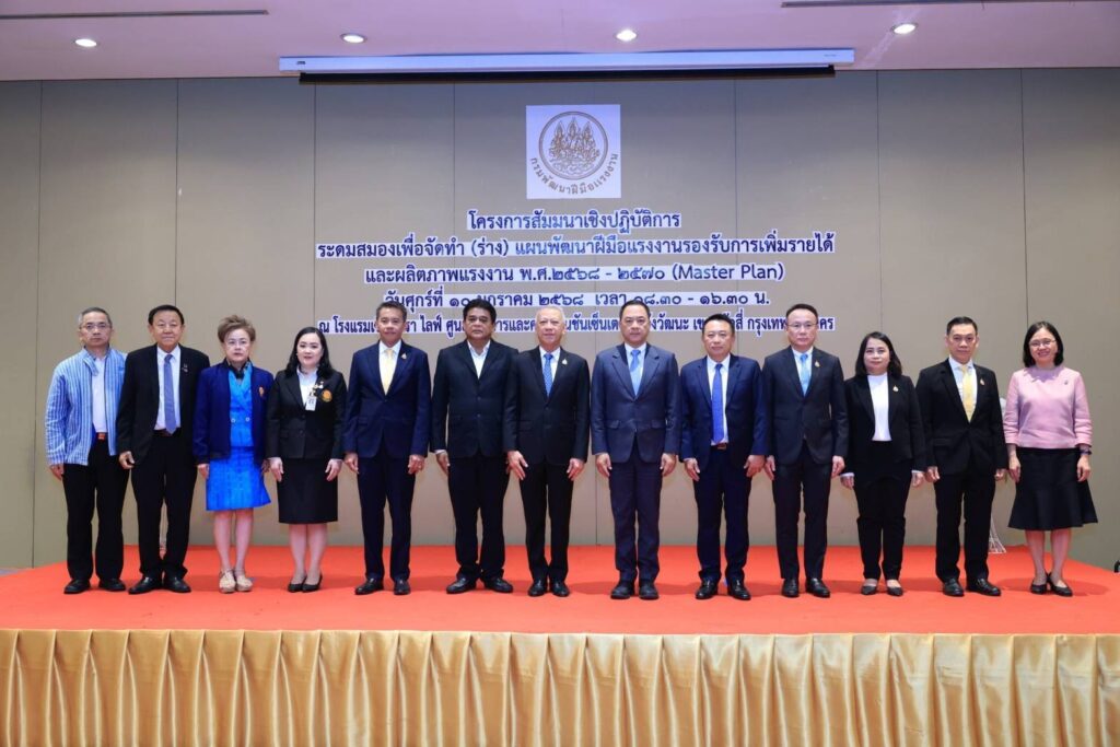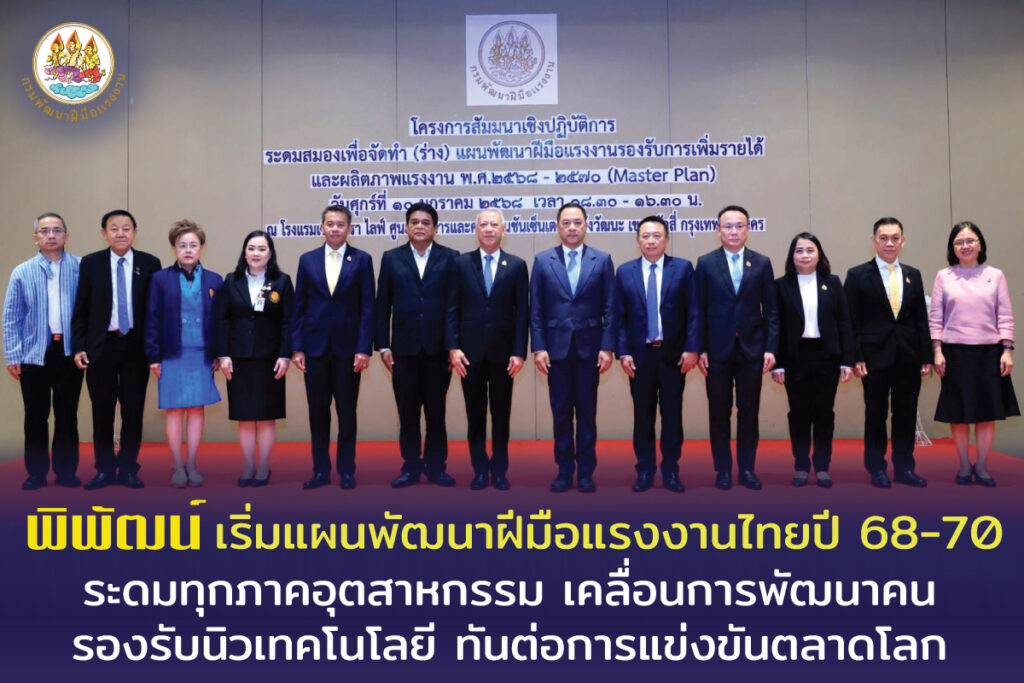 วันที่ 10 มกราคม 2568 นายพิพัฒน์ รัชกิจประการ รัฐมนตรีว่าการกระทรวงแรงงาน เป็นประธานเปิดโครงการสัมมนาเชิงปฏิบัติการระดมสมองเพื่อจัดทำ (ร่าง) แผนพัฒนาฝีมือแรงงานรองรับการเพิ่มรายได้และผลิตภาพแรงงาน พ.ศ.2568-2570 (Master Plan) โดยมี ผู้บริหารกระทรวงแรงงาน นายเดชา พฤกษ์พัฒนรักษ์ อธิบดีกรมพัฒนาฝีมือแรงงาน พร้อมด้วย รองประธานคณะกรรมาธิการการแรงงาน สภาผู้แทนราษฎร,รองประธานสภาอุตสาหกรรมแห่งประเทศ,รองประธานและประธานคณะกรรมการรัฐวิสาหกิจสมาพันธ์เอสเอ็มอีไทย เข้าร่วมด้วย ณ โรงแรมเซ็นทารา ไลฟ์ ศูนย์ราชการและคอนเวนชันเซ็นเตอร์ แจ้งวัฒนะ กรุงเทพฯ