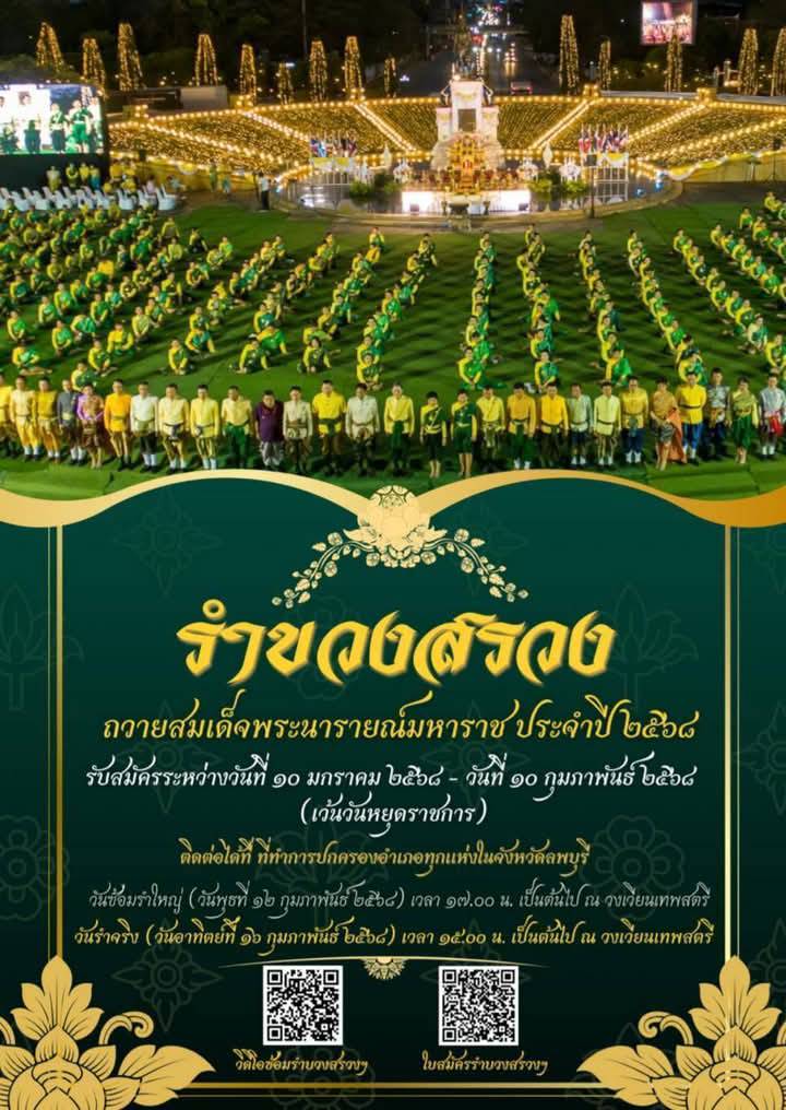 รำบวงสรวงสมเด็จพระนารายณ์มหาราช ตั้งแต่วันที่ 10 ม.ค.68 ถึงวันที่ 10 ก.พ.68 ผู้ลงทะเบียนและ