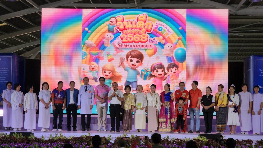 โดยงานวันเด็กแห่งชาติ ปีที่ 7 ประจำปี พ.ศ. 2568 “เจาะเวลาตามหาเด็กมหัศจรรย์” เกิดขึ้นจากการประสานความร่วมมือของคณะสงฆ์อำเภอคลองหลวง, อำเภอคลองหลวง และองค์กรภาคีเครือข่าย “บวร” บ้าน วัด โรงเรียน ราชการ ในพื้นที่จังหวัดปทุมธานี ร่วมกับ วัดพระธรรมกาย, มูลนิธิธรรมกาย และเครือข่ายคณะศิษยานุศิษย์วัดพระธรรมกายทั่วโลก สำหรับพิธีเปิดฯ ฝ่ายสงฆ์ได้รับความเมตตาจากพระธรรมรัตนาภรณ์ ที่ปรึกษาเจ้าคณะภาค 1 เจ้าอาวาสวัดเขียนเขต พระอารามหลวง พร้อมด้วย พระครูวิจิตรอาภากร เจ้าคณะอำเภอคลองหลวง เจ้าอาวาสวัดสว่างภพ และพระครูปลัดรัตนวีรวัฒน์ เจ้าอาวาสวัดพระธรรมกาย และคณะสงฆ์ เข้าร่วมงานฯ ด้านฝ่ายฆราวาสได้รับเกียรติจากท่านผู้มีเกียรติ อาทิ นางสาวนวลนิจ หงส์วิวัฒน์ สมาชิกวุฒิสภา และรองประธานคณะกรรมาธิการการศาสนา คุณธรรม จริยธรรม ศิลปะและวัฒนธรรม วุฒิสภา, นางสาวอภิสรา เกษอินทร์ นายอำเภอคลองหลวง พร้อมด้วยหัวหน้าส่วนราชการ, ผู้บริหารองค์กรปกครองส่วนท้องถิ่น, ผู้นำชุมชน, ผู้ประสานงานองค์กรภาคีเครือข่ายความร่วมมือ “บวร” บ้าน วัด โรงเรียน ราชการ ร่วมงานฯ เป็นจำนวนมาก