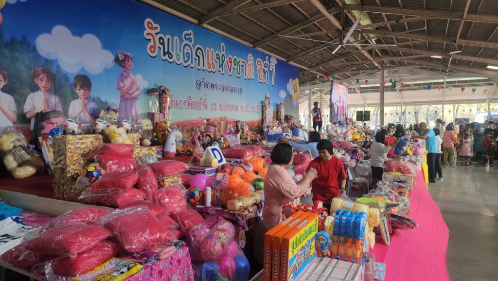 สำหรับบรรยากาศภายในงาน ได้ทำการแบ่ง โซนออกเป็น 4 โซน มีการแสดงดนตรีสุดพิเศษ เล่นเกมส์ฐานกิจกรรม “ใจใสไร้นิวรณ์” นั่งสมาธิ กิจกรรมร่วมพลังความดีสากล 5 ประการ ประกอบด้วย 1. ความสะอาด 2. ความเป็นระเบียบ 3. ความสุภาพนุ่มนวล 4. ตรงต่อเวลา 5. จิตตั้งมั่นและผ่องใส ฐานนันทนาการรับของรางวัล การออกร้านตัดผมฟรี จากโรงเรียนเสริมสวยสถาพร Max U-turn Academy การออกร้านอาหารเครื่องดื่มฟรีตลอดงาน มีกิจกรรมมอบของขวัญจากผู้ใหญ่ใจดีกว่า 150 บูธร้านค้า และองค์กรภาคีจัดงานฯ มากมาย ร่วมมอบของรางวัลให้เด็ก มีจุดถ่ายภาพ สวนดอกไม้ เวทีมอบของขวัญสุดพิเศษรวมหลายหมื่นชิ้น ซึ่งงานวันเด็กแห่งชาติ ปีที่ 7 ประจำปี พ.ศ. 2568 นี้ ได้รับความสนใจจากเด็ก เยาวชน และผู้ปกครอง ในพื้นที่ใกล้เคียงวัดพระธรรมกาย เข้าร่วมกิจกรรมจำนวนหลายหมื่นคน ซึ่งถือเป็นกระแสตอบรับที่ดียิ่ง