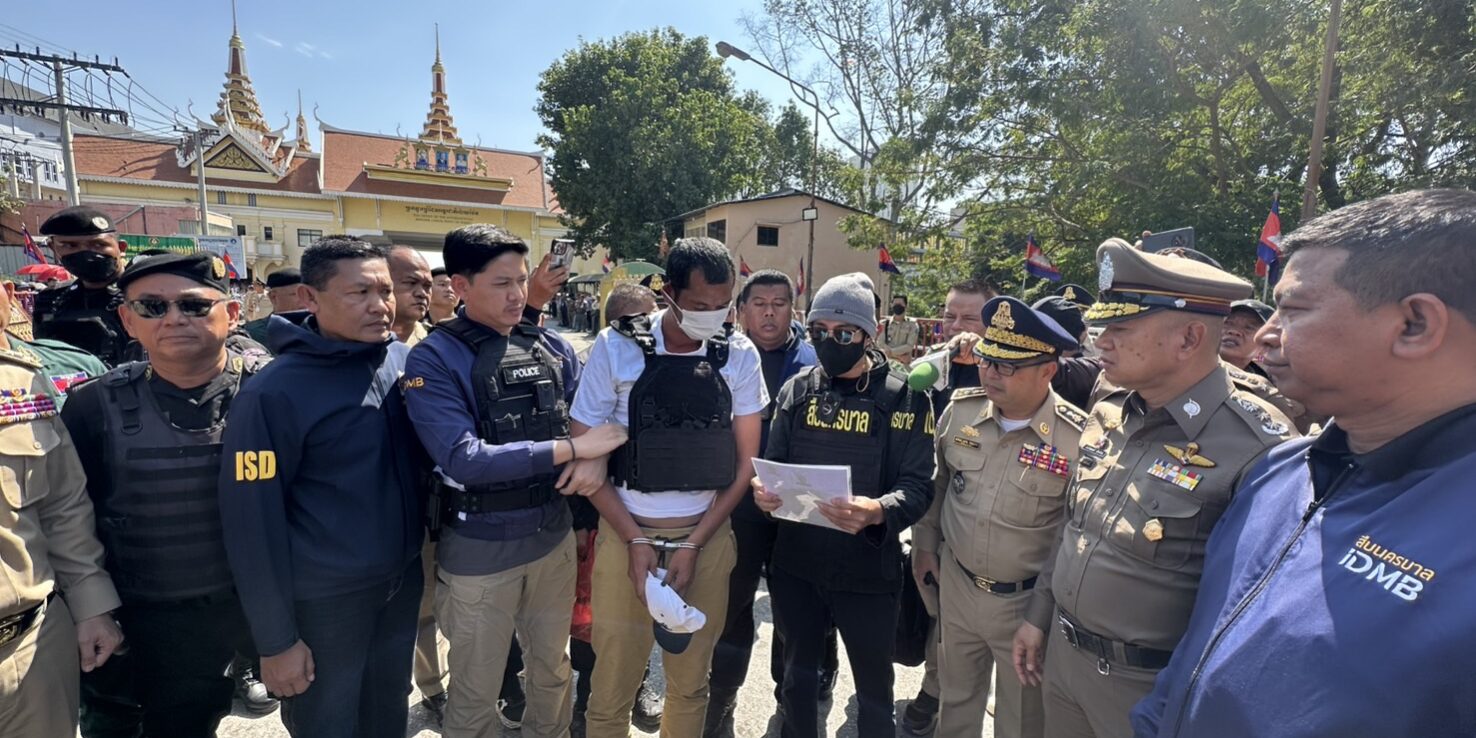 ร่วมกันจับกุมตัวนายเอกลักษณ์ แพน้อย หรือ “จ่าเอ็ม” อายุ 41 ปี ภูมิลำเนา แขวงบางนาเหนือ เขตบางนา จ.กรุงเทพฯ ผู้ต้องหาตามหมายจับศาลอาญาที่ จ.84/2568 ลงวันที่ 8 ม.ค.2568 ข้อหา “ฆ่าผู้อื่นโดยไตร่ตรองไว้ก่อน พาอาวุธปืนไปในเมืองหมู่บ้านหรือทางสาธารณะโดยไม่มีเหตุอันสมควร ยิงปืนซึ่งใช้ดินระเบิดซึ่งใช่เหตุในเมือง” และหมายจับศาลอาญาพระโขนงที่ จ.446/2566 ลงวันที่ 7 ส.ค.2566 ข้อหา “ยักยอก” โดยจับกุมตัวได้ที่ ด่านตรวจคนเข้าเมือง เขาดิน-พนมได ชายแดนไทยกัมพูชา ต.คลองหาด อ.คลองหาด จ.สระแก้ว