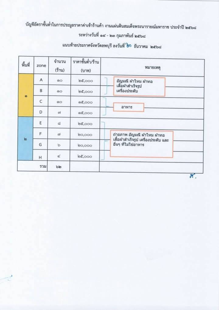 กำหนดวันจัดการประมูลราคาค่าเช่าร้านจำหน่ายสินค้า งานแผ่นดินสมเด็จพระนารายณ์มหาราช ระหว่างวันที่ 14 – 23 กุมภาพันธ์ 2568 ณ พระนารายณ์ราชนิเวศน์
