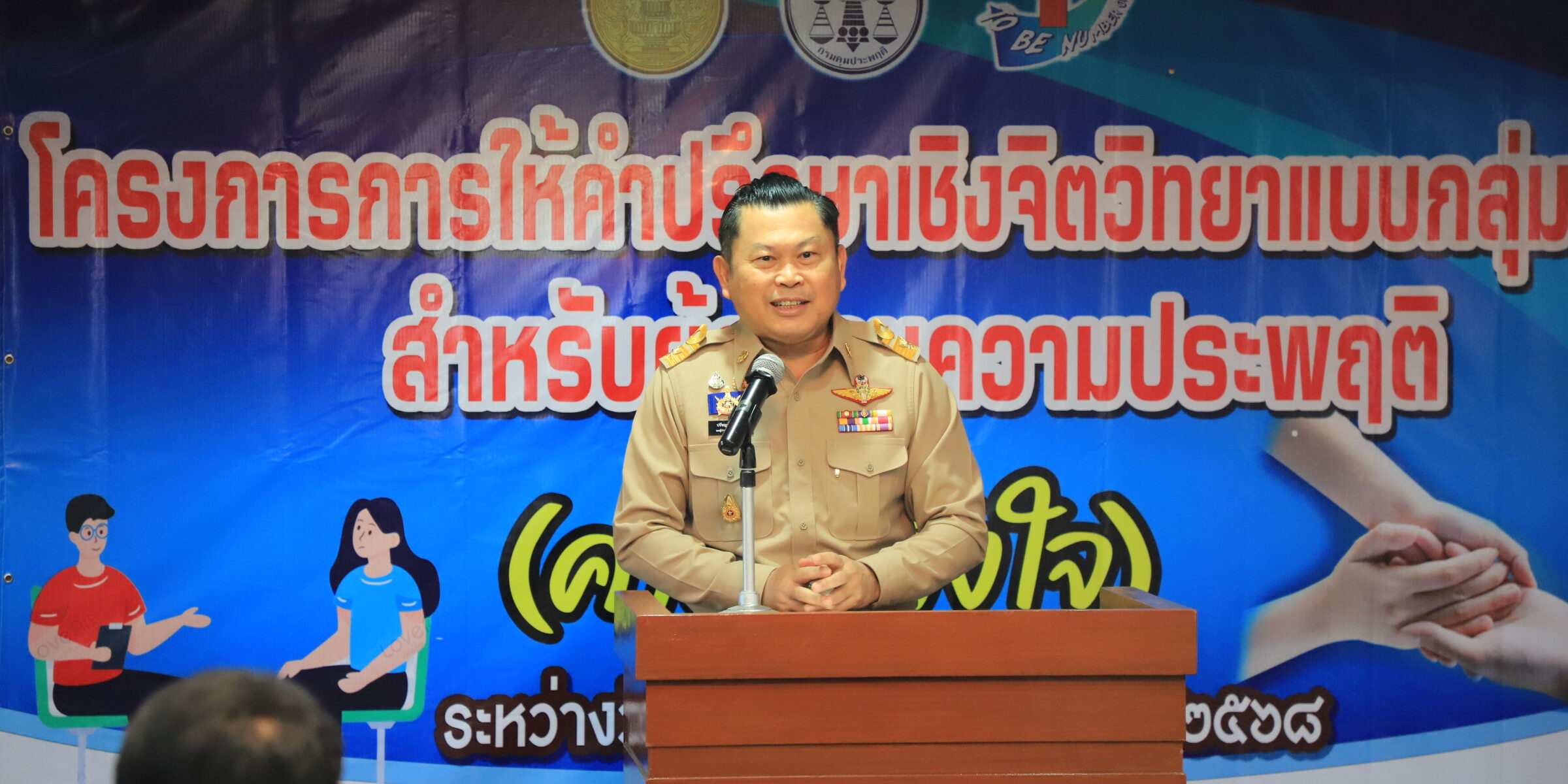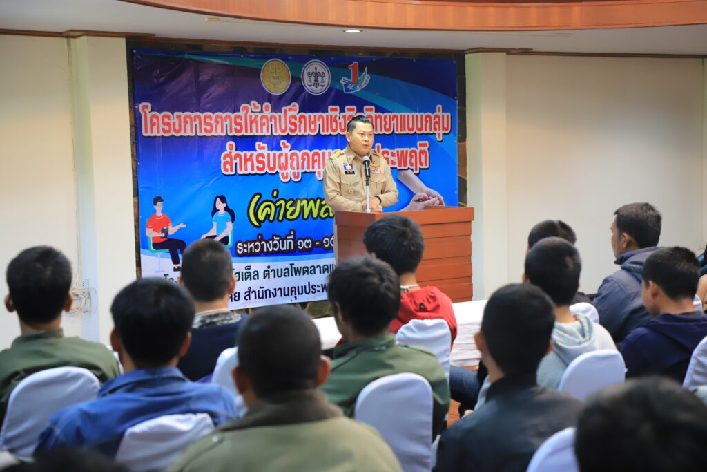สำหรับโครงการ “การให้คำปรึกษาเชิงจิตวิทยาแบบกลุ่ม สำหรับผู้ถูกคุมความประพฤติ (ค่ายพลังใจ)” ในวันนี้กรมคุมประพฤติ ในฐานะหน่วยงานที่รับผิดชอบเกี่ยวกับการคุมประพฤติและการพัฒนาพฤตินิสัย แก้ไข ปรับเปลี่ยนพฤติกรรมผู้เสพยาเสพติดในกระบวนการคุมประพฤติภายใต้แนวคิดในการพัฒนากระบวนการแก้ไขฟื้นฟู พัฒนาพฤตินิสัยผู้เสพยาเสพติดด้วยโปรแกรมต่างๆ โดยโปรแกรมการให้คำปรึกษาเชิงจิตวิทยาแบบกลุ่ม เป็นโปรแกรมที่ช่วยให้ผู้กระทำผิดที่อยู่ในความดูแลของกรมคุมประพฤติ ได้รับการแก้ไขฟื้นฟูที่ถูกต้อง เหมาะสม มีคุณภาพชีวิตที่ดีขึ้น โดยการดำเนินโครงการเป็นการดำเนินการในรูปแบบค่ายพักค้าง จำนวน 3 วัน 2 คืน เน้นการให้การปรึกษาเชิงจิตวิทยาแบบกลุ่ม สำหรับผู้ถูกคุมความประพฤติ มีวัตถุประสงค์หลัก 3 ประการ ประกอบด้วย 1. เพื่อให้ผู้ถูกคุมความประพฤติได้รู้จัก เข้าใจและตระหนักในคุณค่าของตนเองและผู้อื่นมากขึ้น 2. เพื่อเพิ่มประสิทธิภาพในการดำเนินชีวิตและการอยู่ร่วมกันกับผู้อื่นของผู้ถูกคุมความประพฤติ และ 3. เพื่อให้ผู้ถูกคุมความประพฤติตระหนักในศักยภาพของตน และสามารถวางแผนในการแก้ไขตนเอง ให้ได้รับการยอมรับจากสังคม ซึ่งกลุ่มเป้าหมายจำนวน 30 คน เป็นผู้ที่มีความเสี่ยงสูงและผ่านการเข้าร่วมโปรแกรมแก้ไขฟื้นฟู : โปรแกรมพื้นฐาน (โปรแกรมใจพร้อม) มาแล้วโดยมีทีมวิทยากรซึ่งผ่านการอบรมผู้นำกระบวนการในการจัดโครงการ รวมผู้เข้าร่วมโครงการทั้งสิ้น จำนวน 39 คน