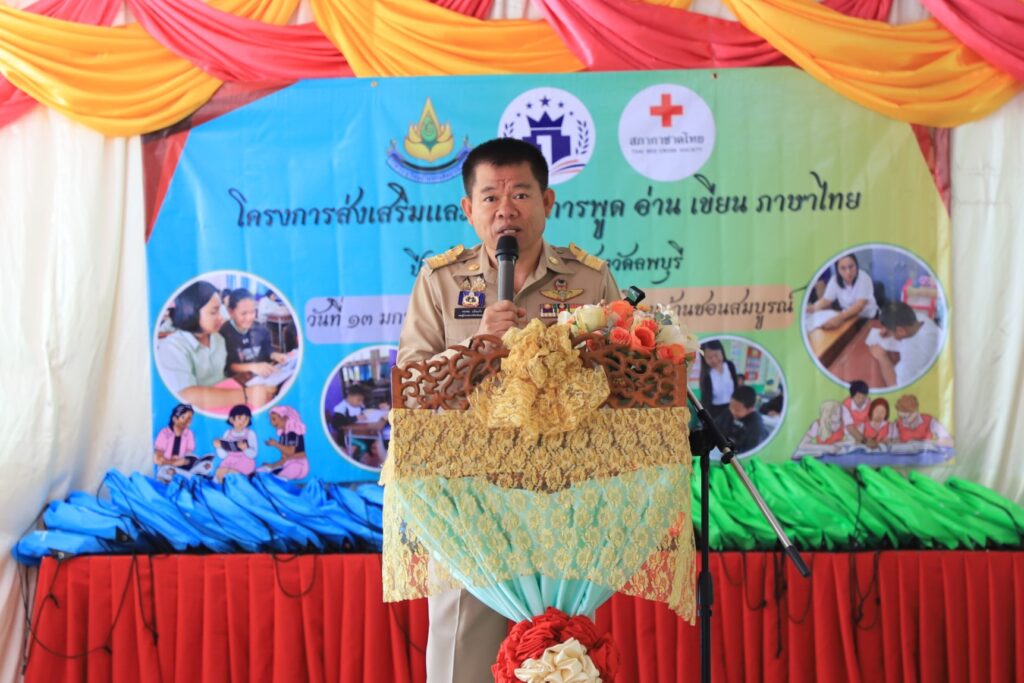 ซึ่งจากการติดตามสำรวจกลุ่มพื้นที่เป้าหมายในเขตพื้นสำนักงานเขตพื้นที่การศึกษาประถมศึกษาลพบุรี เขต 1 และ เขต 2 พบว่ายังมีเด็กนักเรียนเยาวชนระดับชั้น ป.1 – ป.6 ที่มีความบกพร่องทางการเรียนรู้อ่านเขียนไม่ได้ไม่ผ่านการวัดและประเมินผล หลายราย เพื่อเป็นการแก้ไขปัญหาการอ่านไม่ออกเขียนไม่ได้ของเด็กนักเรียนกลุ่มดังกล่าว จังหวัดลพบุรีและเหล่ากาชาดจังหวัด จึงบูรณาการร่วมกับหน่วยงานทุกภาคส่วนในการขับเคลื่อนโครงการ “ส่งเสริมและพัฒนาการพูด อ่าน เขียนภาษาไทย” ให้เกิดผลอย่างเป็นรูปธรรม โดยในภาคปีการศึกษา 2567 กำหนดโรงเรียนเป้าหมายไว้ 19 โรงเรียน จำนวนเด็กนักเรียน 650 คน โดยจะลงเยี่ยมพื้นที่โรงเรียนเป้าหมายเพื่อสนับสนุนช่วยเหลือโรงเรียนแก้ไขปัญหาด้านโครงสร้างพื้นฐาน และสิ่งแวดล้อมของโรงเรียน การสอนเสริมด้านการอ่าน การเขียน รวมถึงมอบถุงยังชีพการศึกษาให้นักเรียน ได้นำไปพัฒนาการเรียนการสอนเพื่อให้ปัญหาเด็กเยาวชนอ่านไม่ออก เขียนไม่ได้ของจังหวัดลพบุรีลดลงและกลายเป็นศูนย์ในที่สุด