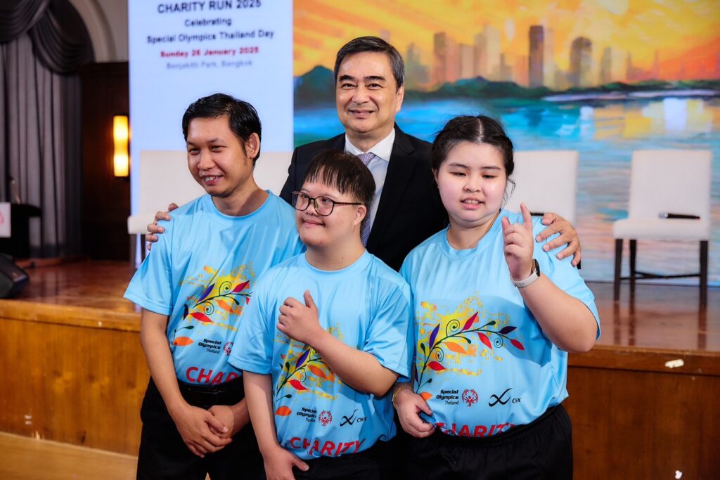 นายอภิสิทธิ์ เวชชาชีวะ อดีตนายกรัฐมนตรี และ Special Olympics Thailand Celebrity Ambassador กล่าวถึงความเชื่อมั่นในพลังของกีฬาว่า “กีฬาเป็นเครื่องมือที่ทรงพลังในการนำผู้คนมารวมกัน เพื่อสร้างสังคมที่อยู่ร่วมกันได้อย่างกลมเกลียว และเปิดโอกาสให้ทุกภาคส่วนในสังคมได้มีส่วนร่วมมากขึ้น” นายอภิสิทธิ์ยังกล่าวเพิ่มเติมว่า “ผมรู้สึกดีใจและเป็นเกียรติที่ได้รับเชิญให้เป็นทูตของสเปเชียลโอลิมปิคไทย และในโอกาสการจัดงานวิ่งการกุศลฯ ครั้งนี้ มีโครงการ ‘ช่วยน้องได้วิ่ง’ ซึ่งถือเป็นโครงการที่มีความหมายอย่างยิ่ง เพราะผู้พิการทางสติปัญญาจำนวนมากแทบไม่เคยมีโอกาสได้ร่วมกิจกรรมวิ่งในที่สาธารณะ การที่เราสนับสนุนให้น้องๆ เหล่านี้ได้มีโอกาสเข้าร่วมแข่งขันร่วมกับนักวิ่งทั่วไป จึงเป็นสิ่งที่สำคัญอย่างมาก” เขายังได้กล่าวถึงความสำคัญของการเปิดโอกาสให้ผู้พิการทางสติปัญญาได้ออกมามีส่วนร่วมในสังคมว่า “ผู้พิการทางสติปัญญาส่วนใหญ่มักใช้ชีวิตในครอบครัว และไม่ค่อยมีโอกาสสัมผัสกับสังคมภายนอก การจัดกิจกรรมเช่นนี้จึงไม่เพียงสร้างความสุขให้กับน้องๆ นักกีฬาสเปเชียลโอลิมปิคไทย แต่ยังเป็นการสร้างคุณค่าและความหมายให้กับชีวิตของพวกเขา รวมถึงช่วยเสริมสร้างการยอมรับในสังคม” นายอภิสิทธิ์สรุปว่า การใช้กีฬาเป็นสื่อกลางเช่นนี้ จะช่วยสร้างความเข้าใจและความเท่าเทียมในสังคม พร้อมทั้งเปิดโอกาสให้ผู้พิการได้แสดงศักยภาพและเข้าถึงโอกาสที่เท่าเทียมกันในชุมชน