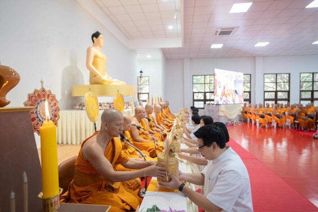 วันที่ 14 มกราคม พ.ศ. 2568 เวลา 07.00 น. ณ อาคารปลูกศรัทธา วัดพระธรรมกาย อ.คลองหลวง จ.ปทุมธานี พระครูวิจิตรอาภากร เจ้าคณะอำเภอคลองหลวง เจ้าอาวาสวัดสว่างภพ เป็นประธานสงฆ์ในพิธีเจริญพระพุทธมนต์ และทำบุญตักบาตร ถวายพระราชกุศล แด่พระบาทสมเด็จพระเจ้าอยู่หัว เนื่องในโอกาสพระราชพิธีสมมงคลพระชนมายุเท่าพระบาทสมเด็จพระพุทธยอดฟ้าจุฬาโลกมหาราช สมเด็จพระปฐมบรมกษัตริยาธิราชแห่งพระราชวงศ์จักรี พุทธศักราช 2568 โดยมีนางสาวอภิสรา เกษอินทร์ นายอำเภอคลองหลวง เป็นประธานฝ่ายฆราวาส พร้อมด้วยหัวหน้าส่วนราชการ กำนัน ผู้ใหญ่บ้าน และประชาชนในพื้นที่ เข้าร่วมพิธีฯ การนี้ พระครูปลัดรัตนวีรวัฒน์ เจ้าอาวาสวัดพระธรรมกาย พร้อมด้วย คณะสงฆ์วัดพระธรรมกาย นายองอาจ ณฐ ธรรมนิทา โฆษกคณะศิษยานุศิษย์วัดพระธรรมกาย, นางสาวบุญจันทร์ บ่อไทย เลขานุการมูลนิธิธรรมกาย และผู้แทนคณะศิษยานุศิษย์วัดพระธรรมกาย ได้เข้าร่วมประกอบพิธีฯ ด้วย
