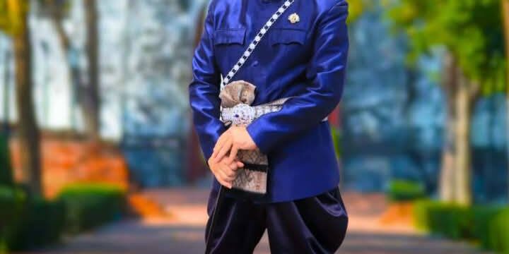 รองผู้ว่าราชการจังหวัดลพบุรีแต่งชุดไทยสีน้ำเงินนุ่งโจงกระเบน เป็นสง่างาม ในภาพโปสเตอร์