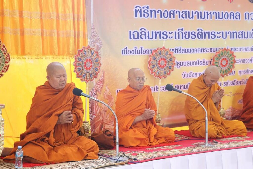 วันที่ 14 มกราคม 2568 ณ อาคารเอนกประสงค์สนามกีฬาองค์การบริหารส่วนจังหวัดสิงห์บุรี นายสุเมธ ธีรนิติ ผู้ว่าราชการจังหวัดสิงห์บุรีเป็นประธานในพิธีเจริญพระพุทธมนต์และทำบุญตักบาตรถวายพระราชกุศลเนื่องในโอกาสพระราชพิธีสมมงคลพระชนมายุเท่าพระบาทสมเด็จพระพุทธยอดฟ้าจุฬาโลกมหาราชสมเด็จพระปฐมบรมกษัตริย์ราชแห่งพระราชวงศ์จักรี พุทธศักราช 2568 โดยมีนางวาสนา ธีรนิติ นายกเหล่ากาชาดจังหวัดสิงห์บุรี รองผู้ว่าราชการจังหวัดสิงห์บุรี หัวหน้าศาล ทหาร ตำรวจ หัวหน้าส่วนราชการ ข้าราชการ ผู้นำศาสนา และประชาชนทุกหมู่เหล่าเข้าร่วมพิธีทางศาสนา มหามงคล ถวายเป็นพระราชกุศล เฉลิมพระเกียรติ พระบาทสมเด็จพระเจ้าอยู่หัว เนื่องในโอกาสพระราชพิธีสมมงคล