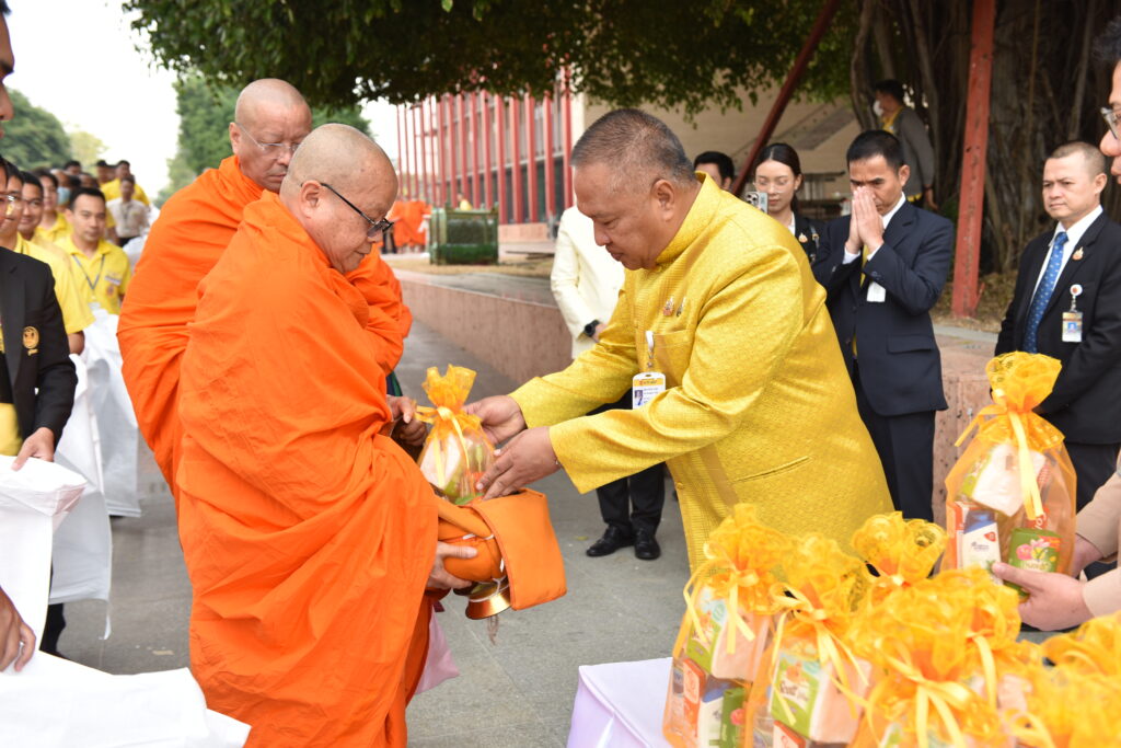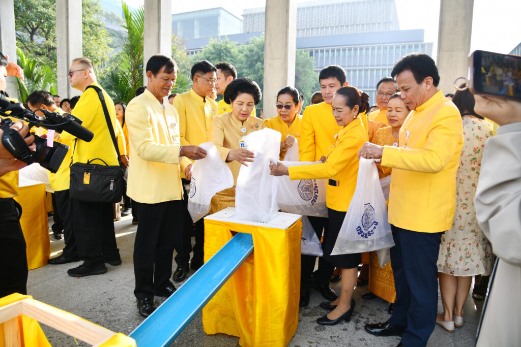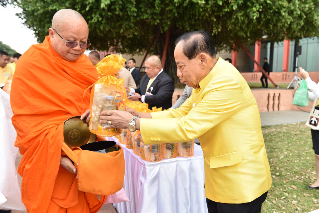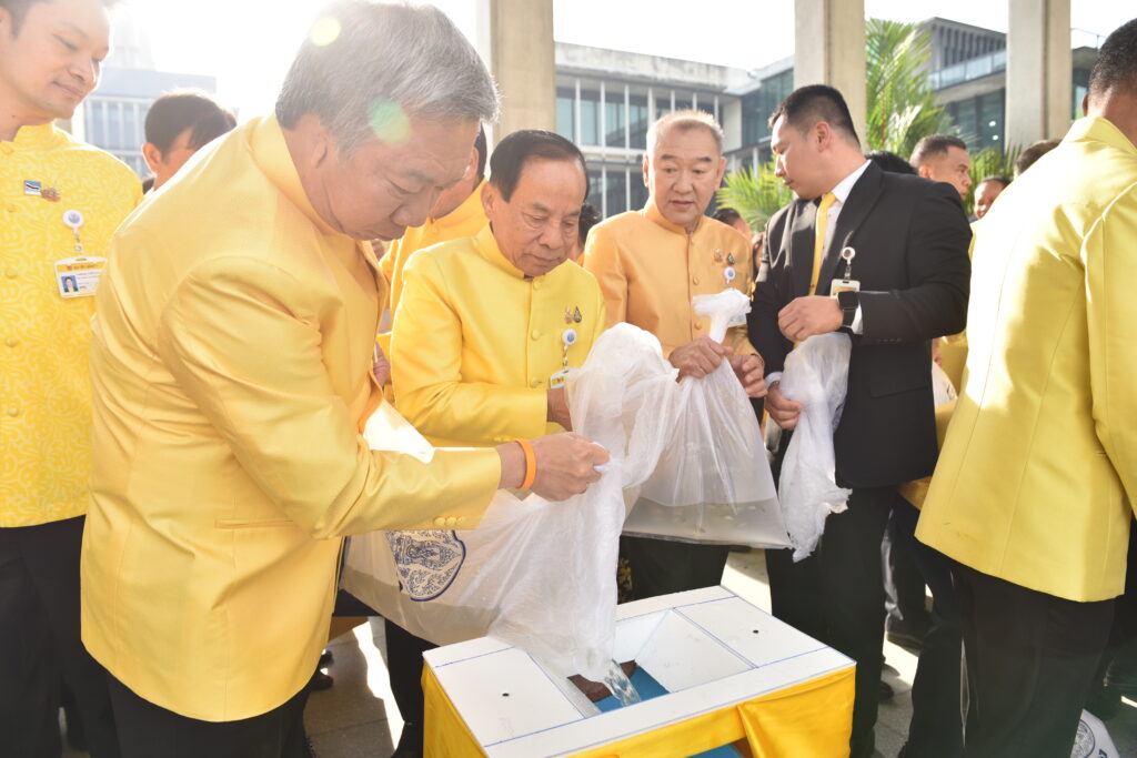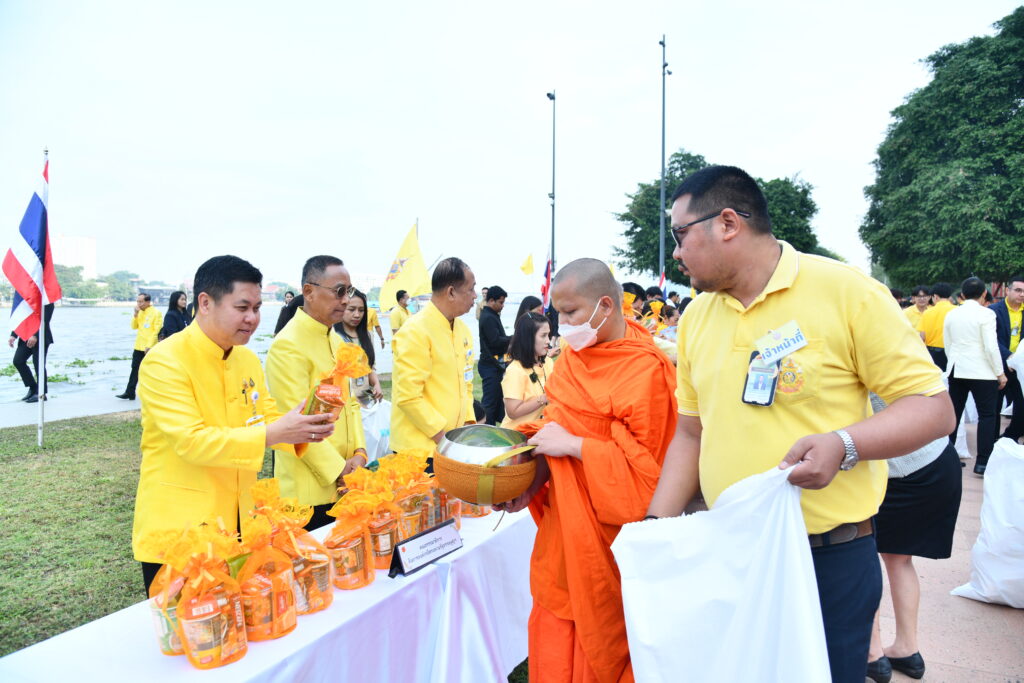 จากนั้น ได้มีพิธีตักบาตรข้าวสารอาหารแห้ง พระสงฆ์ จำนวน 73 รูป และพิธีปล่อยปลา ถวายพระราชกุศล ณ สนามหญ้าริมท่าน้ำเจ้าพระยา ฝั่งวุฒิสภา