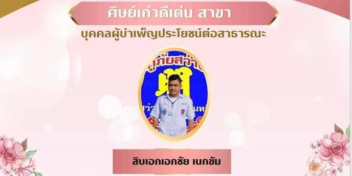 ให้เป็นศิษย์เก่าดีเด่นและเข้ารับรางวัลศิษย์เก่าดีเด่น ด้านสาขา บุคคลผู้บำเพ็ญประโยชน์ต่อสาธารณะ