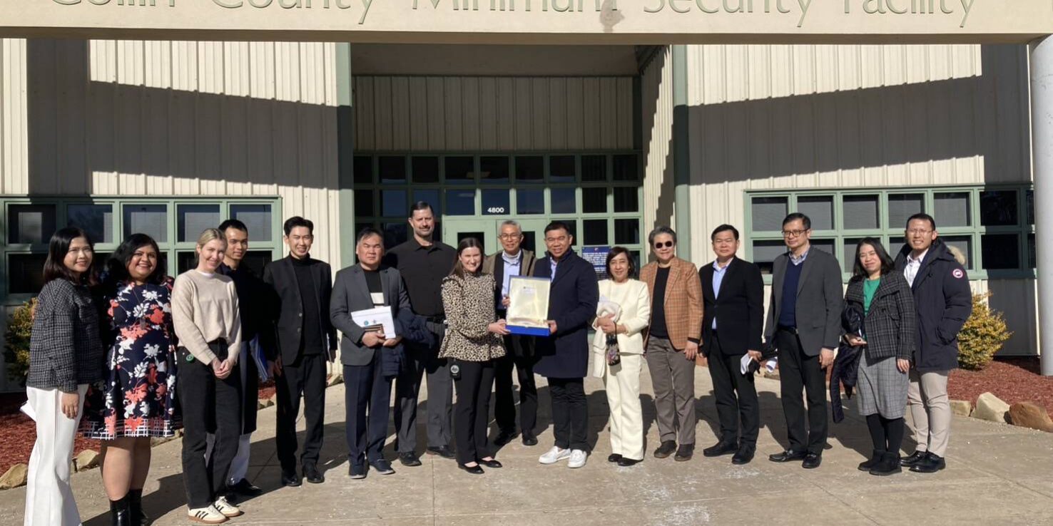 ช่วงบ่าย คณะผู้แทนฯ เดินทางไปยังเรือนจำโครงสร้างเบาเมืองคอลลิน (Collin County Minimum Security Facility) เพื่อเยี่ยมชมและรับฟังการบรรยายการดำเนินงานบำบัดรักษาผู้ถูกคุมความประพฤติในเรือนจำ โดยมีคุณบริตตานี เกอร์เนอร์ (Brittany Gurney) ผู้อำนวยการโปรแกรมสถานฟื้นฟูระยะยาว โดยโปรแกรม S.C.O.R.E (Sheriff’s Convicted Offender Reentry Effort) รับผิดชอบโดย สำนักงานคุมประพฤติและราชทัณฑ์ และสำนักงานตำรวจเมืองคอลลิน ตั้งแต่ปี ค.ศ.1991 เพื่อควบคุมตัวและให้บริการบำบัดรักษาแก่ผู้ถูกคุมความประพฤติที่มีความเสี่ยงปานกลางและเสี่ยงสูงโดยใช้พื้นที่ในเรือนจำโครงสร้างเบา มีเป้าหมายเพื่อให้ผู้เข้าโครงการมีความคิดและพฤติกรรมที่ดีขึ้น ฝึกวินัยการทำงาน และมีวิถีการใช้ชีวิตที่ดีขึ้น ผ่านหลักสูตรที่มีหลักฐานเชิงประจักษ์ ได้แก่ การจัดการความโกรธ การส่งเสริมให้เปลี่ยนแปลง การจัดการเงิน การพัฒนาทักษะชีวิต การให้ความรู้ยาเสพติดและให้คำปรึกษา โดยมีการดำเนินงานใน 2 รูปแบบ ได้แก่ แบบพื้นฐาน ระยะเวลา 45 วัน และแบบเข้มข้น ระยะเวลา 120-180 วัน และเมื่อสิ้นสุดโปรแกรม จะได้รับการส่งต่อเข้ารับการให้คำปรึกษาในรูปแบบผู้ป่วยนอก 12 สัปดาห์ ทั้งนี้ จากการดำเนินงานในปี ค.ศ.2024 มีผู้เข้าโปรแกรม 140 คน