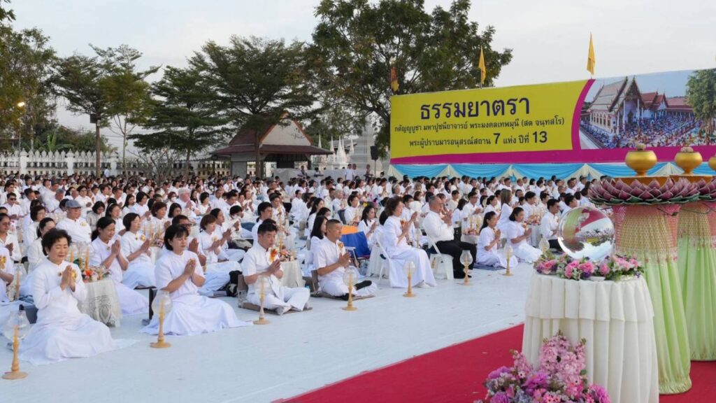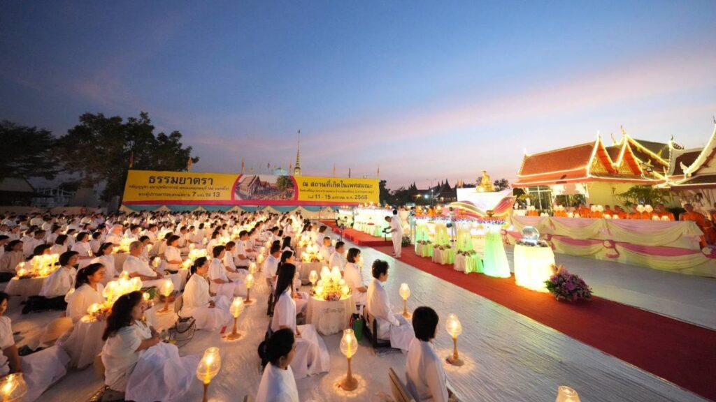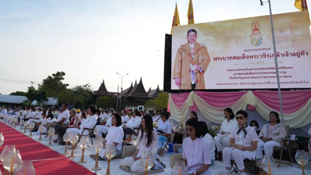 วันที่ 14 มกราคม 2568 พระครูสมุห์ ธานินทร์ ปุญฺญนนฺโท ผู้ช่วยเจ้าอาวาสวัดพระธรรมกาย จังหวัดปทุมธานี นำคณะสงฆ์ธรรมยาตรา 1,141 รูปและพสกนิกร สาธุชน เจริญสมาธิภาวนา อธิษฐานจิตถวายพระพรชัยมงคลแด่พระบาทสมเด็จพระเจ้าอยู่หัว และพระบรมวงศานุวงศ์ทุกพระองค์ โดยมีนายรัชกฤต พยัคฆ์ นายอำเภอสองพี่น้อง เป็นประธานฆราวาส ณ วัดสองพี่น้อง จ.สุพรรณบุรี