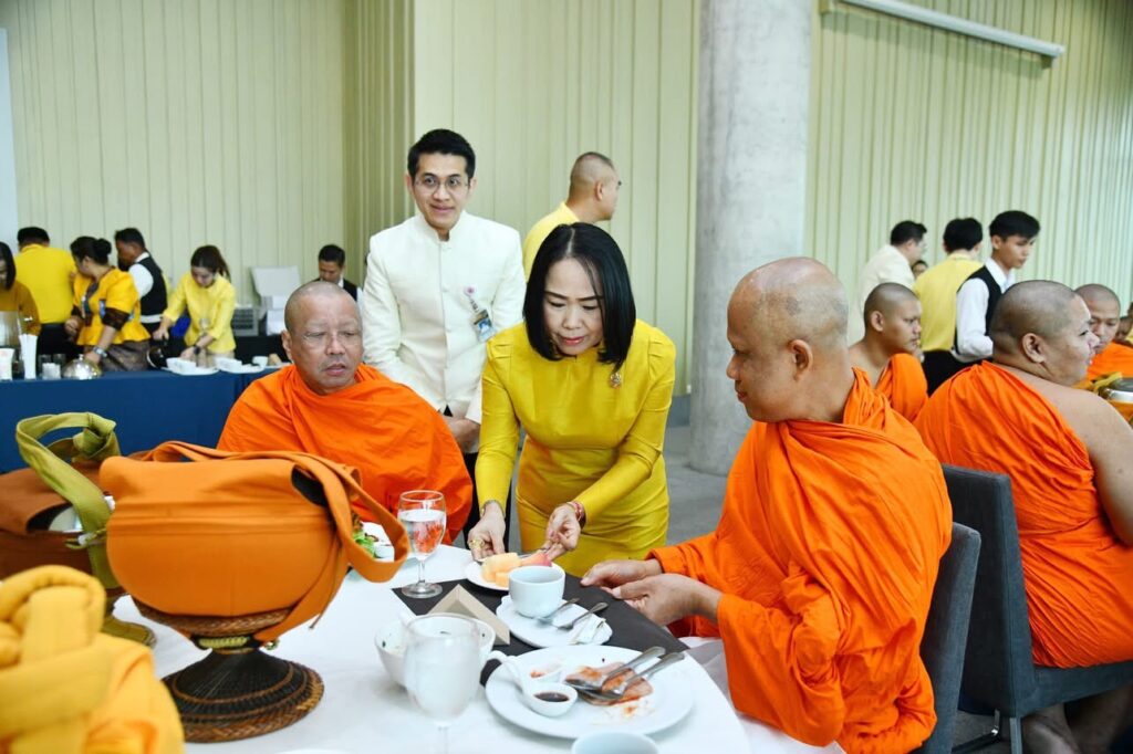 พร้อมทั้งร่วมทำบุญตักบาตรพระสงฆ์ และปล่อยปลา ณ สนามหญ้าริมท่าน้ำเจ้าพระยา ฝั่งวุฒิสภา