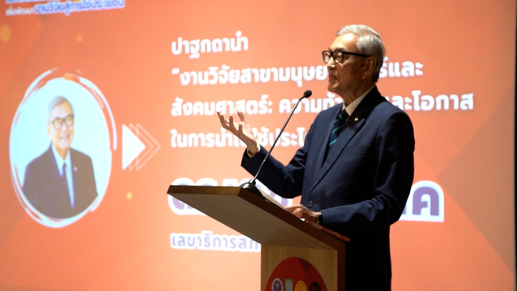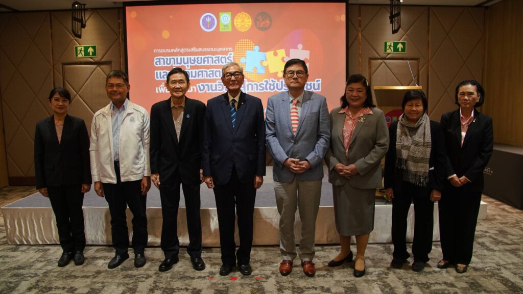 โครงการการพัฒนาหลักสูตรเสริมศักยภาพและจรรยาบรรณด้านการวิจัย ในสาขามนุษยศาสตร์และสังคมศาสตร์ ภายใต้การสนับสนุนจากสำนักงานการวิจัยแห่งชาติ (วช.) ได้จัดการอบรมนำร่องหลักสูตรเสริมสมรรถนะบุคลากรสาขามนุษยศาสตร์และสังคมศาสตร์เพื่อพัฒนางานวิจัยสู่การใช้ประโยชน์ (THRU) ซึ่งมีบุคลากรจากทั่วประเทศเข้าร่วมการอบรมกว่า 50 คน ตั้งแต่วันที่ 14–16 มกราคม 2568 ณ โรงแรมแกรนด์ ริชมอนด์ จังหวัดนนทบุรี