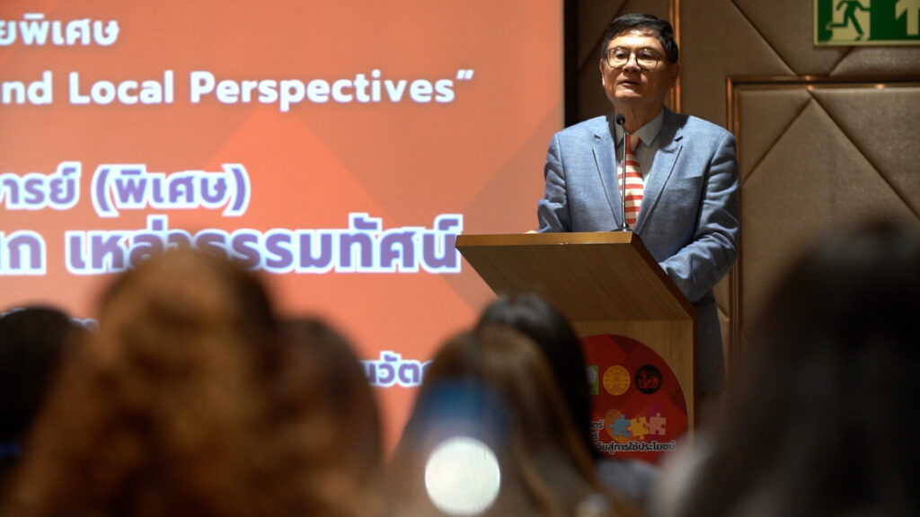โดย ศาสตราจารย์พิเศษ ดร.เอนก เหล่าธรรมทัศน์ อดีตรัฐมนตรีว่าการกระทรวงการอุดมศึกษา วิทยาศาสตร์ วิจัยและนวัตกรรม (อว.) ให้เกียรติเป็นผู้บรรยายในหัวข้อแรก “Module 1: Global and Local Perspective” ซึ่งมีเนื้อหาเกี่ยวกับแนวคิดของการพัฒนางานวิจัยจากมุมมองในระดับโลกและท้องถิ่น