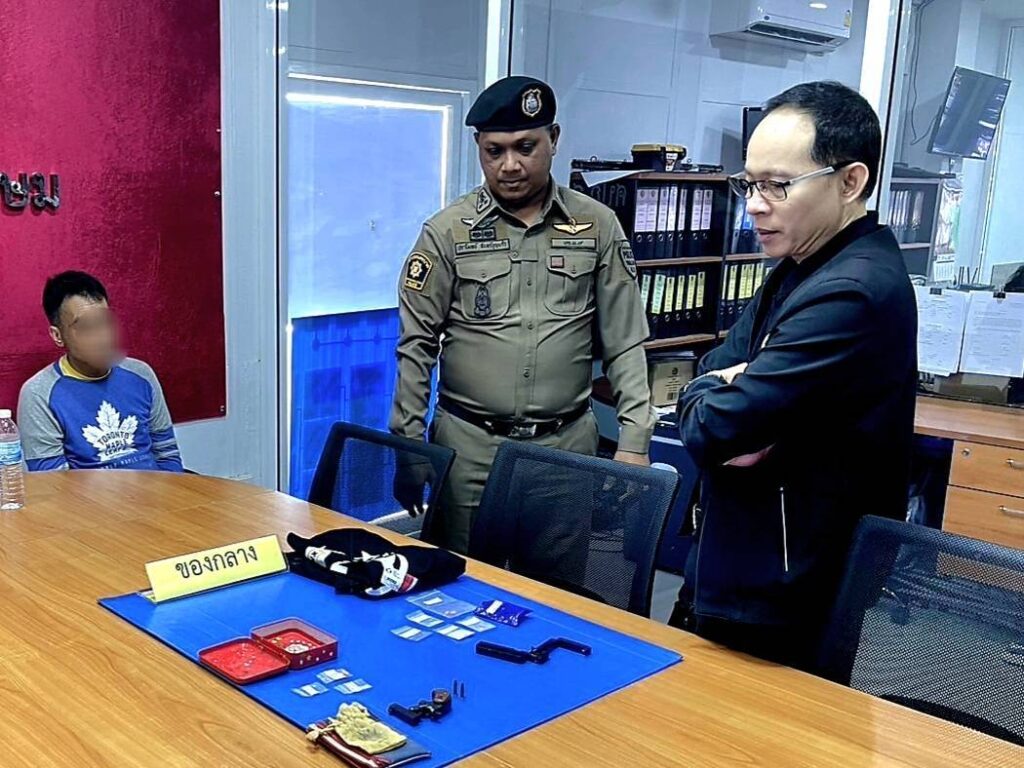 สืบเนื่องจากเจ้าหน้าที่สืบสวนจนทราบว่ามีการลักลอบจำหน่ายยาเสพติด จากนั้นจึงได้มีการขออนุมัติหมายค้นต่อศาลอาญาธนบุรีตามหมายค้นที่ 8/2568 และหมายค้นที่ 12/2568 ลงวันที่ 14 มกราคม 2568 ไปตรวจค้นที่บ้านเกิดเหตุทั้งสองหลัง ผลการตรวจค้นพบอาวุธปืน เครื่องกระสุนปืน และยาเสพติด อยู่ในความครอบครองของผู้ต้องหา จึงได้ยึดทั้งหมดไว้เป็นของกลาง