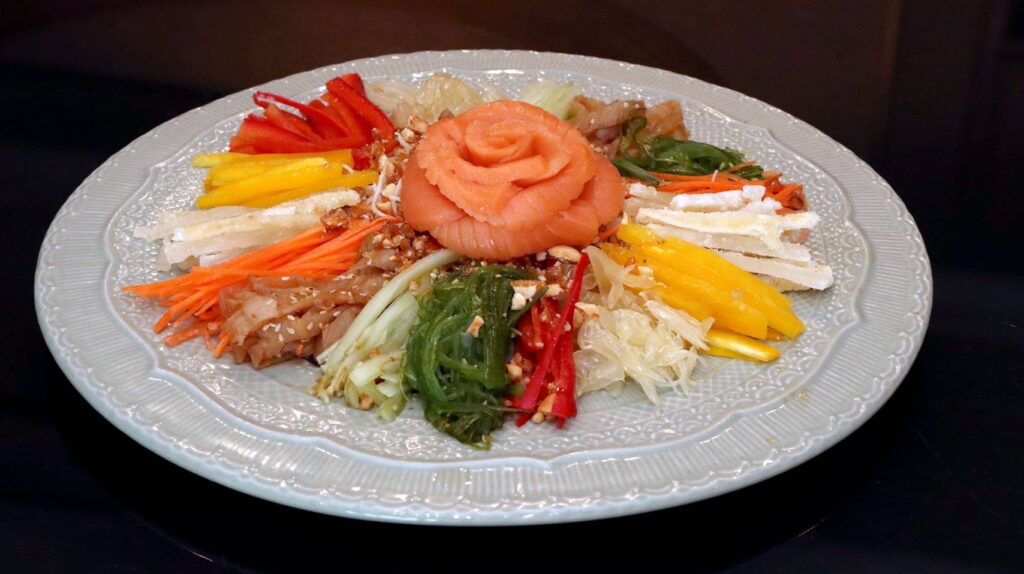 หรือจะเลือกเมนูตามสั่งเช่น “หยี่ซัง-สลัดปลานำโชค” ซุปลิ้นหมูรากบัว (เงินทองไหลมา) สเต็กเป๋าฮื้อ (มั่งคั่ง ร่ำรวย) เริ่มต้นเพียงที่ละ 399 บาท++ นอกจากนี้ยังมีเมนูติ่มซำบริการเฉพาะมื้อกลางวัน
