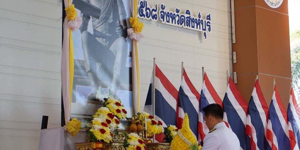เป็นประธานในพิธีวางพานพุ่มถวายราชสักการะในวันพ่อขุนรามคำแหงโดยมี นางวาสนา ธีรนิติ นายกเหล่ากาชาดจังหวัดสิงห์บุรี นายวราดิศร อ่อนนุช นางสาววีรวรรณ จันทนเสวี รองผู้ว่าราชการจังหวัดสิงห์บุรี ศาล ทหาร ตำรวจ หัวหน้าส่วนราชการ เจ้าหน้าที่ พนักงาน เข้าร่วมพิธี