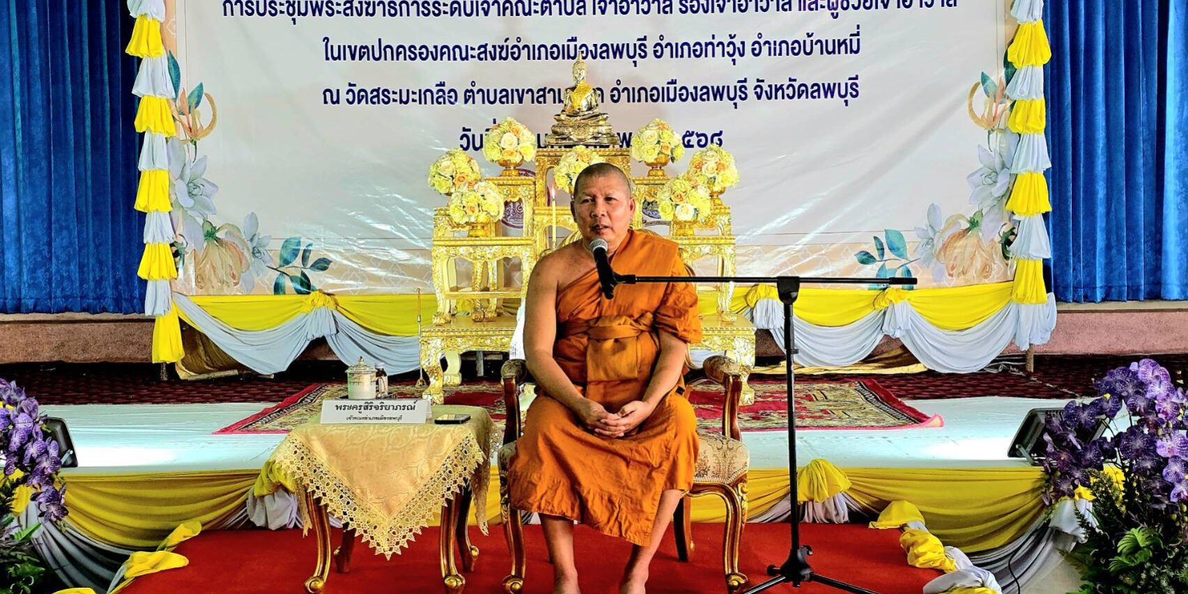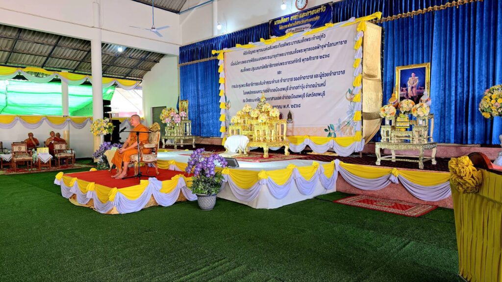 ที่ วัดสระมะเกลือ ตำบลเขาสามยอด อำเภอเมืองลพบุรี พระครูสิริจริยาภรณ์เจ้าอาวาสวัดเสาธงทอง พระอารามหลวง เจ้าคณะอำเภอเมืองลพบุรี ได้รับมอบจาก เจ้าคณะจังหวัดลพบุรี นำคณะสงฆ์วัด กว่า 500 รูป จาก อำเภอเมือง อำเภอบ้านหมี่ และอำเภอท่าวุ้ง จังหวัดลพบุรี เข้าร่วมพิธี เจริญพระพุทธมนต์และเจริญจิตตภาวนา เพื่อเฉลิมพระเกียรติ และถวายเป็นพระราชกุศลครั้งยิ่งใหญ่ แด่พระบามสมเด็จพระเจ้าอยู่หัวฯ เนื่องในโอกาสพระราชพิธีสมมงคลพระชนมายุเท่าพระบาทพระพุทธยอดฟ้าจุฬาโลกมหาราช สมเด็จพระปฐมบรมกษัตริยาธิราชแห่งพระราชวงศ์จักรี พุทธศักราช 2568