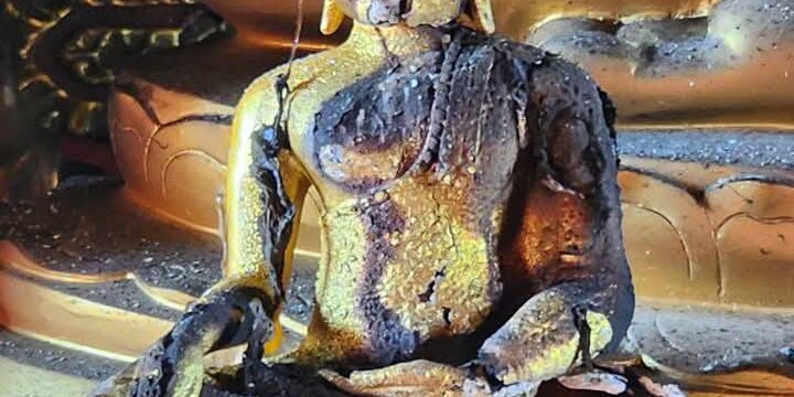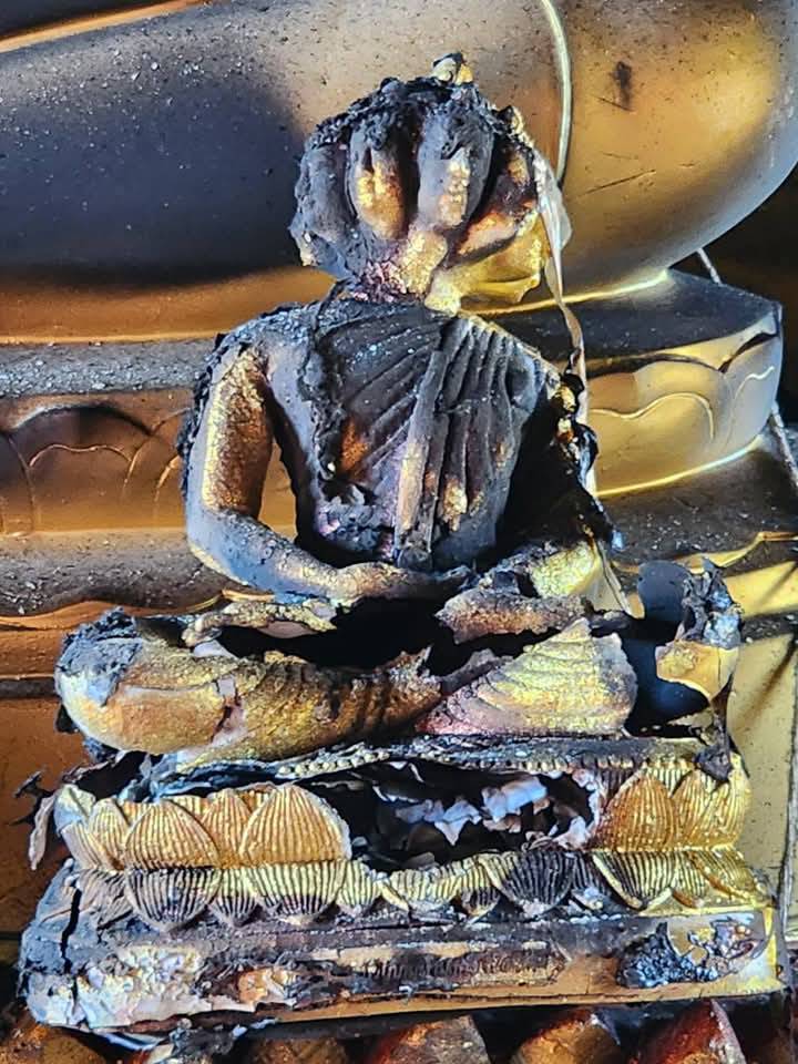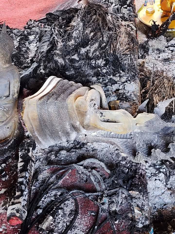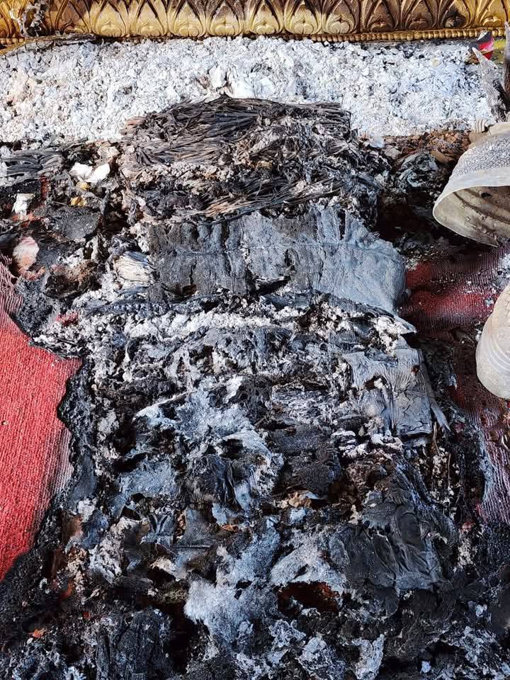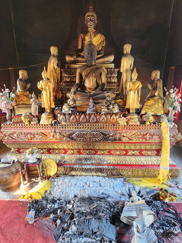 พระจะลงโบสถ์ทำวัตร จึงรู้ว่าเกิดเหตุเพลิงไหม้ด้านใน ความเสียหายตามภาพครับ ส่วนมูลค่าความเสียหายทางจนท.กำลังประเมิน