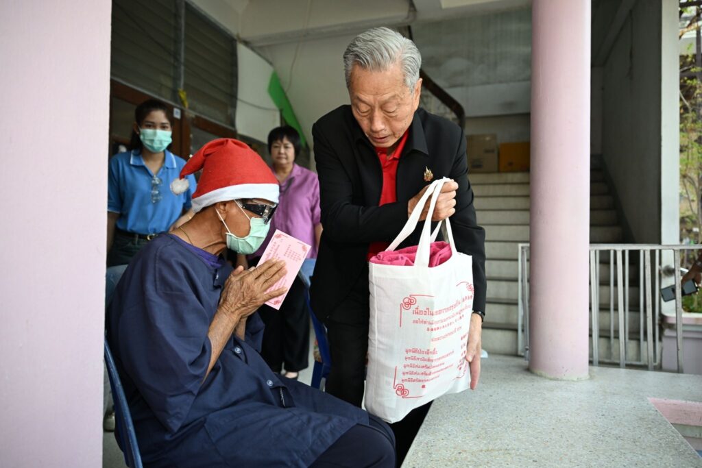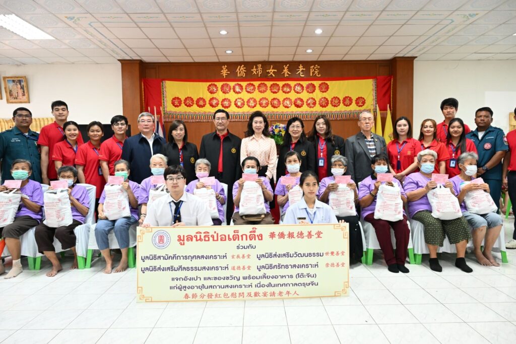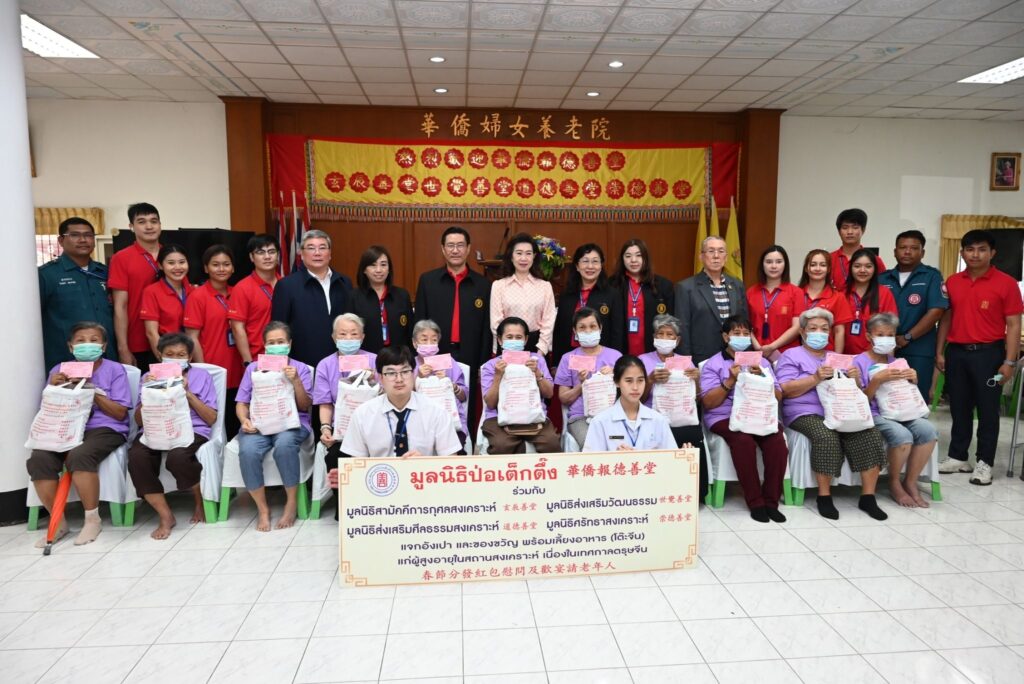 วันนี้ (วันที่ 21 มกราคม พ.ศ. 2568) มูลนิธิป่อเต็กตึ๊ง นำโดย นายสุรพงศ์ เสรฐภักดี กรรมการและรองเหรัญญิก พร้อมด้วย นายชาญกิจ วิทยาวรากรณ์ กรรมการ นำทีมฝ่ายสังคมสงเคราะห์ฯ นำโดย นางศิริพร กระจ่างหล้า ผู้จัดการฝ่ายสังคมสงเคราะห์ นางสาวดวงชุตา ติยะพจนพรกุล ผู้ช่วยผู้จัดการฝ่ายสังคมสงเคราะห์ นางสาวศุภรัตน์ สมบัติเจริญไทย หัวหน้าแผนกส่งเสริมการศึกษาและอาชีพ และ นางชญาน์นันท์ สรพลจิโรจเดชา หัวหน้าแผนกสื่อสารองค์กร(จีน) พร้อมทีมงาน ร่วมลงพื้นที่จัดเลี้ยงอาหาร พร้อมมอบเงินอั่งเปาคนละ 1,000 บาท และชุดของขวัญ ประกอบด้วย ผ้าขนหนูเช็ดตัว นมถั่วเหลือง แป้งเย็น น้ำส้มชนิดกล่อง ขนม และครีมทาผิว ให้กับผู้สูงวัยในสถานสงเคราะห์คนชราไทย-จีน เนื่องในเทศกาลตรุษจีน ประจำปี 2568 ประกอบด้วย สถานสงเคราะห์คนชราปากน้ำ (มูลนิธิวัยวัฒนานิวาส) จ.สมุทรปราการ สถานสงเคราะห์คนชราบางเขน (มูลนิธิธารนุเคราะห์) กรุงเทพฯ และสถานสงเคราะห์คนชราปทุมธานี (มูลนิธิมิตรภาพสงเคราะห์) จ.ปทุมธานี เพื่อเป็นการเยี่ยมเยียน และเป็นขวัญกำลังใจแก่ผู้สูงวัย ซึ่งมูลนิธิฯ ได้ดำเนินการต่อเนื่องมาเป็นเวลา 58 ปี โดยมีมูลนิธิจีนอีก 4 แห่ง ประกอบด้วย มูลนิธิสามัคคีการกุศลสงเคราะห์ (เฮี้ยงซิ๊งเซี่ยงตึ๊ง) มูลนิธิส่งเสริมวัฒนธรรม (สี่กั๊กเซี่ยงตึ๊ง) มูลนิธิส่งเสริมศีลธรรมสงเคราะห์ (เต่าเต็กเซี่ยงตึ๊ง) และ มูลนิธิศรัทธาสงเคราะห์ (ช่งเต็กเซี่ยงตึ๊ง) ร่วมดำเนินการ โดยบรรยากาศเป็นไปด้วยความอบอุ่น และในวันพรุ่งนี้ (วันพุธที่ 22 มกราคม พ.ศ. 2568) มูลนิธิฯ กำหนดลงพื้นที่มอบอั่งเปา พร้อมชุดของขวัญ อีก 2 แห่ง ประกอบด้วย สถานสงเคราะห์คนชราเฉลิมราชกุมารี (หลวงพ่อเปิ่นอุปถัมภ์) จ.นครปฐม และ สถานสงเคราะห์คนชรานครปฐม