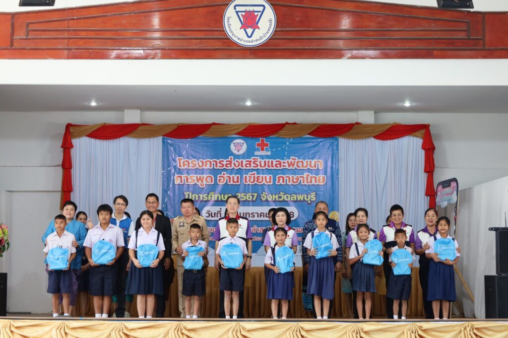 ซึ่งจากการติดตามสำรวจกลุ่มพื้นที่เป้าหมายในเขตพื้นสำนักงานเขตพื้นที่การศึกษาประถมศึกษาลพบุรี เขต 1 และ เขต 2 พบว่ายังมีเด็กนักเรียนเยาวชนระดับชั้น ป.1 – ป.6 ที่มีความบกพร่องทางการเรียนรู้อ่านเขียนไม่ได้ไม่ผ่านการวัดและประเมินผล หลายราย เพื่อเป็นการแก้ไขปัญหาการอ่านไม่ออกเขียนไม่ได้ของเด็กนักเรียนกลุ่มดังกล่าว จังหวัดลพบุรีและเหล่ากาชาดจังหวัด จึงบูรณาการร่วมกับหน่วยงานทุกภาคส่วนในการขับเคลื่อนโครงการ “ส่งเสริมและพัฒนาการพูด อ่าน เขียนภาษาไทย” ให้เกิดผลอย่างเป็นรูปธรรม โดยในภาคปีการศึกษา 2567 กำหนดโรงเรียนเป้าหมายไว้ 19 โรงเรียน จำนวนเด็กนักเรียน 650 คน โดยจะลงเยี่ยมพื้นที่โรงเรียนเป้าหมายเพื่อสนับสนุนช่วยเหลือโรงเรียนแก้ไขปัญหาด้านโครงสร้างพื้นฐาน และสิ่งแวดล้อมของโรงเรียน การสอนเสริมด้านการอ่าน การเขียน รวมถึงมอบถุงยังชีพการศึกษาให้นักเรียน ได้นำไปพัฒนาการเรียนการสอนเพื่อให้ปัญหาเด็กเยาวชนอ่านไม่ออก เขียนไม่ได้ของจังหวัดลพบุรีลดลงและกลายเป็นศูนย์ในที่สุด โดยมีกำหนดการลงพื้นที่เยี่ยมอีกครั้งในวันที่ 30 มกราคม 2568 ในพื้นที่อำเภอเมืองลพบุรี และอำเภอพัฒนานิคม